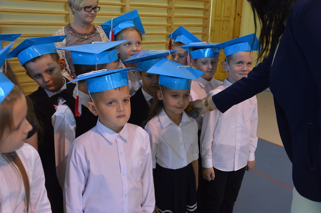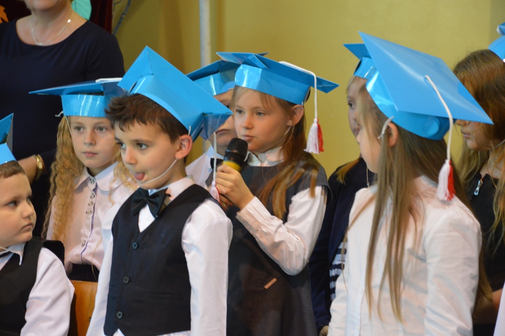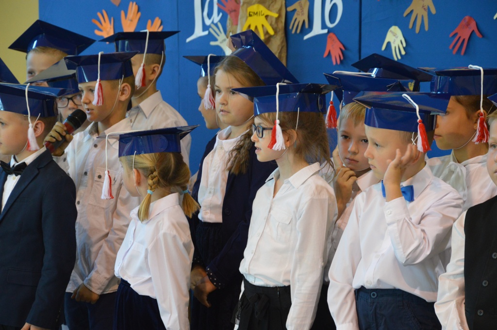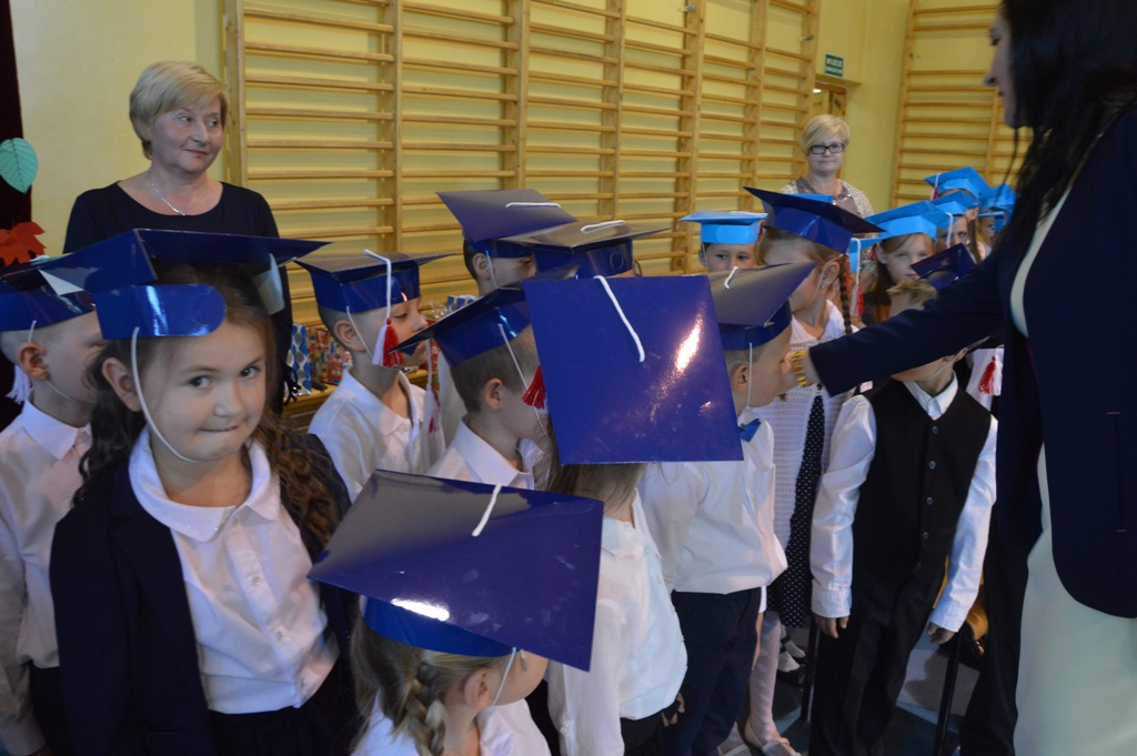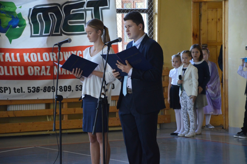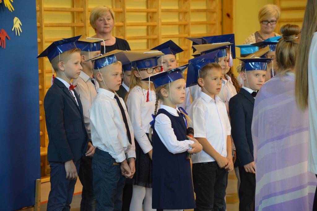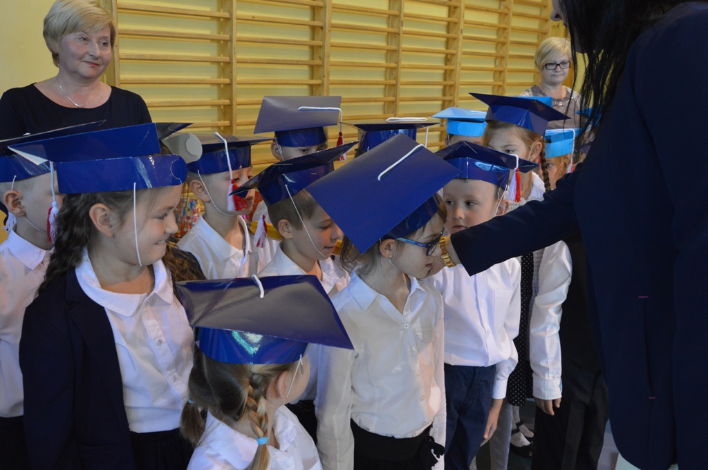Szczególnie miłym akcentem było wręczenie na ręce wychowawców – p. Bożeny Bielak i p. Stanisławy Bielak, upominków dla uczniów klas pierwszych. Słodkości, i nie tylko, wręczyli: przewodnicząca Rady Miejskiej, p. Ewa Zielińska, przewodnicząca Rady Rodziców, p. Anna Tokarczyk oraz przewodniczący Uczniowskiej Rady Szkolnej, Artur Janusz.