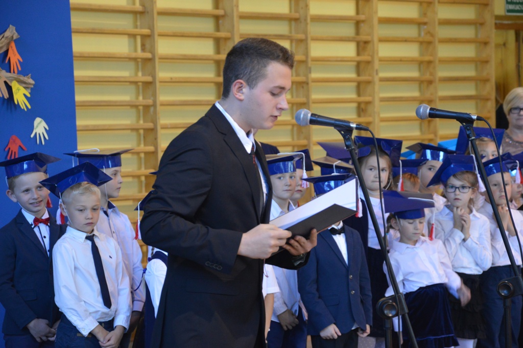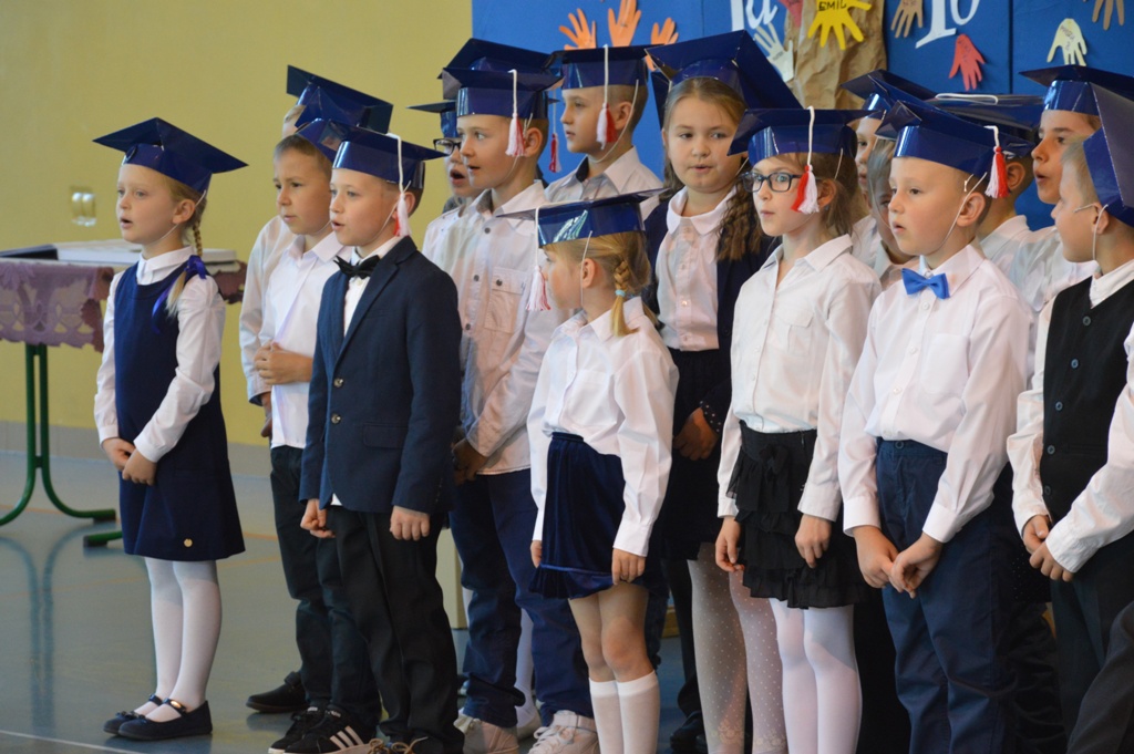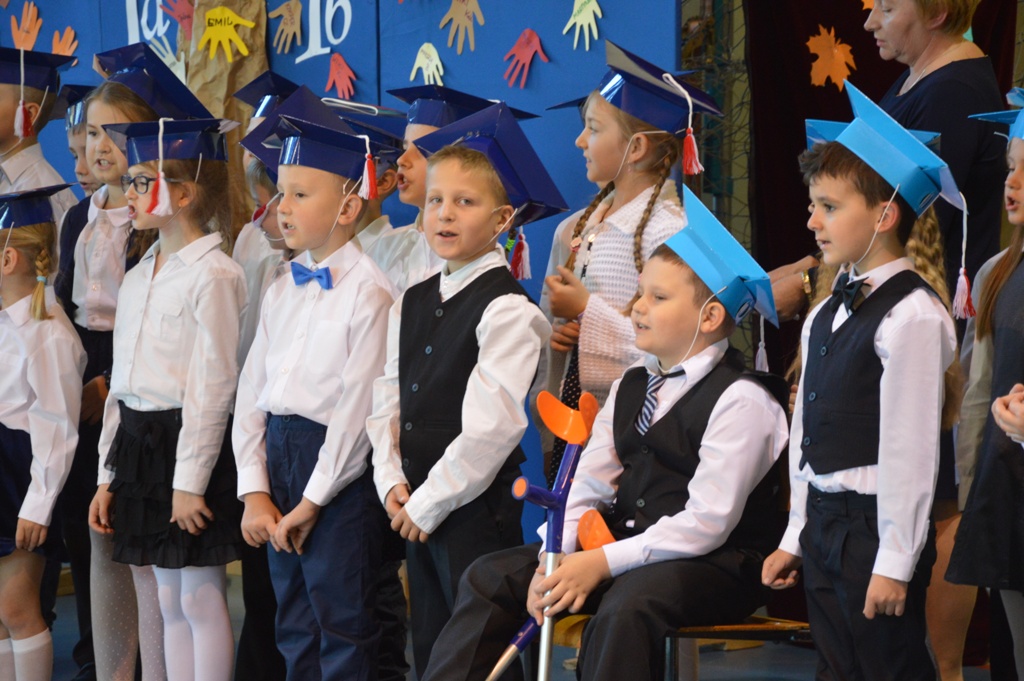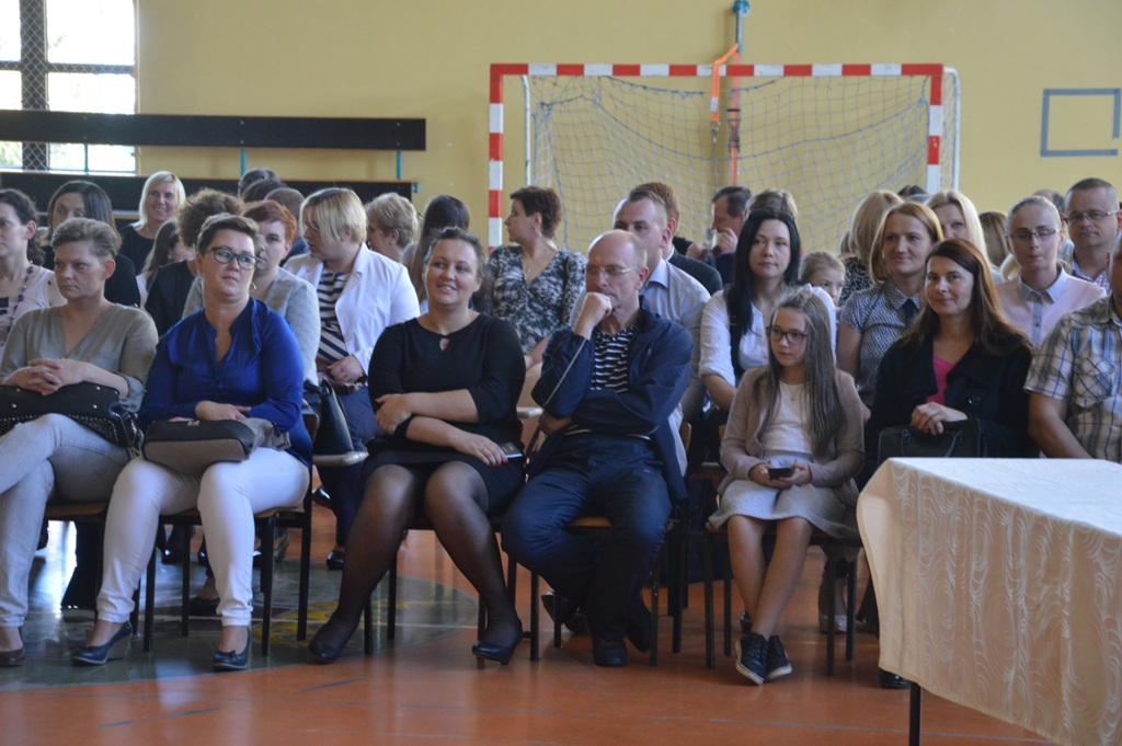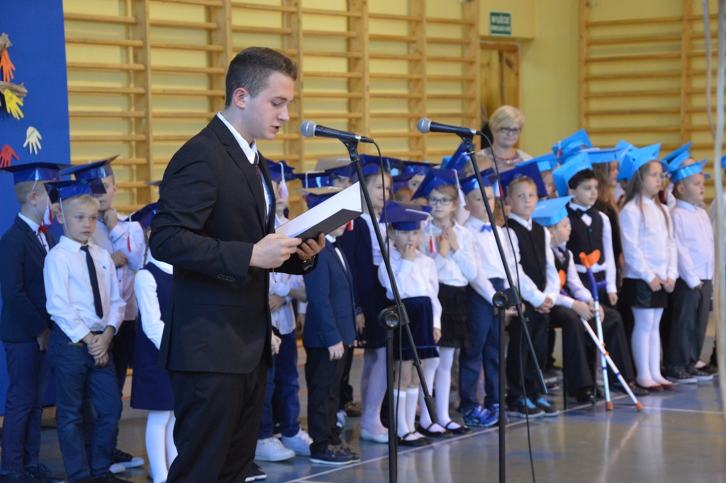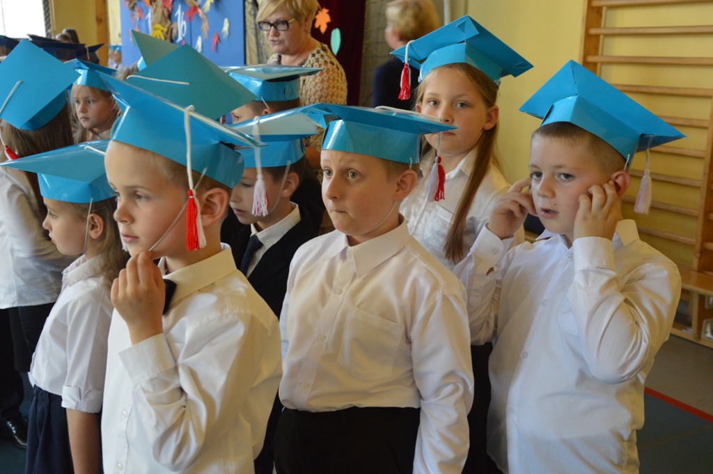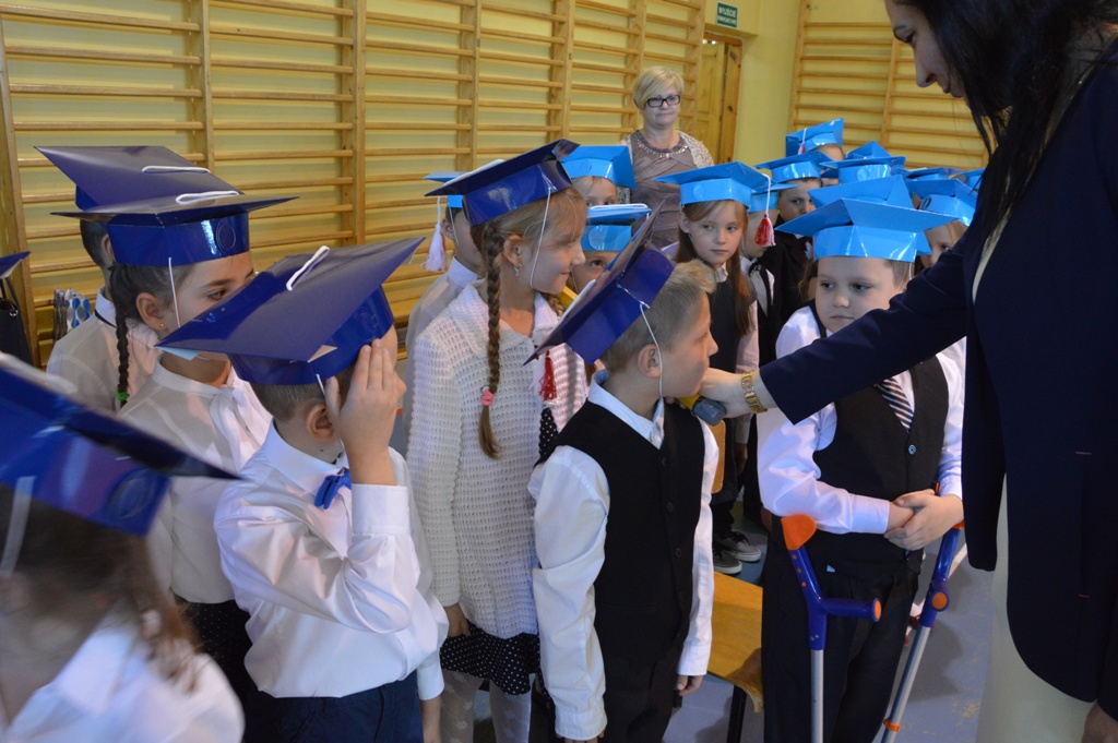 Szczególnie miłym akcentem było wręczenie na ręce wychowawców – p. Bożeny Bielak i p. Stanisławy Bielak, upominków dla uczniów klas pierwszych. Słodkości, i nie tylko, wręczyli: przewodnicząca Rady Miejskiej, p. Ewa Zielińska, przewodnicząca Rady Rodziców, p. Anna Tokarczyk oraz przewodniczący Uczniowskiej Rady Szkolnej, Artur Janusz.