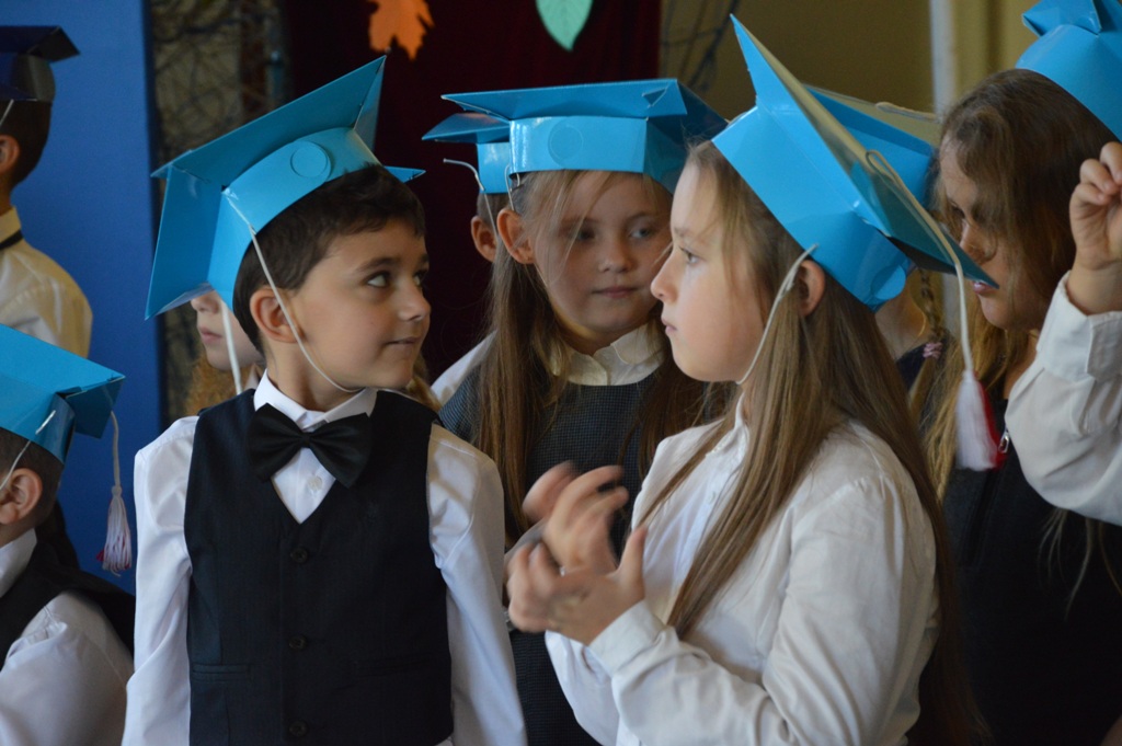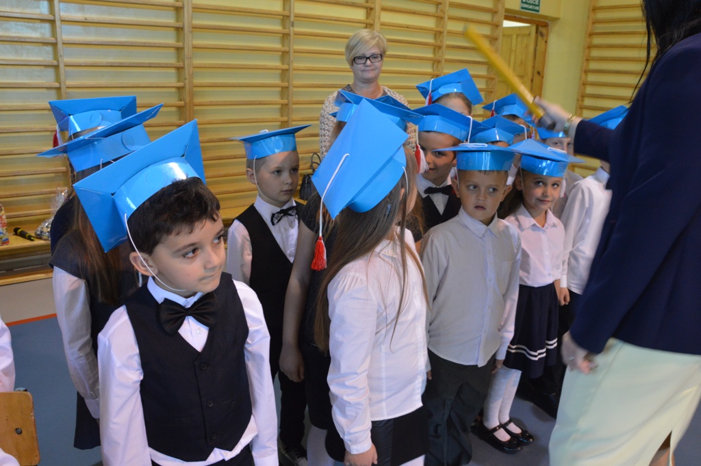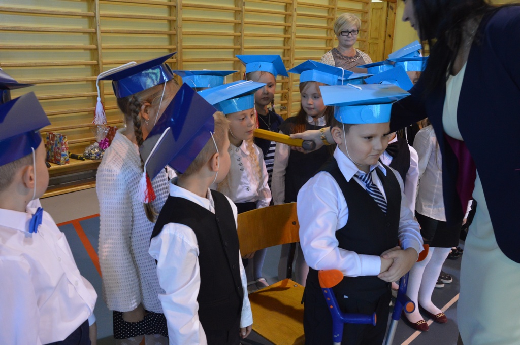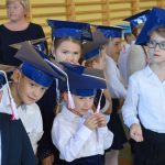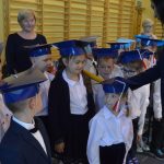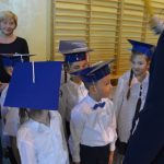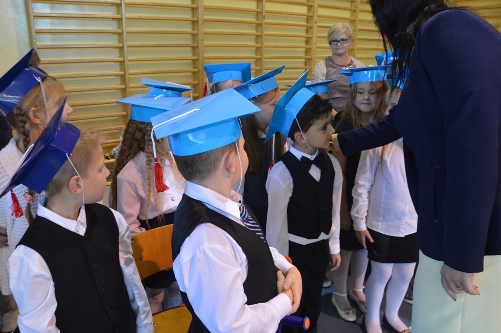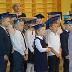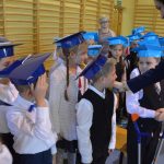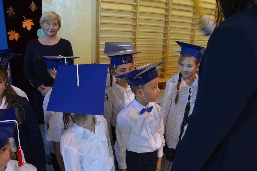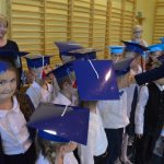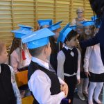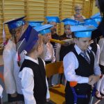 Następnie dzieci przeszły wraz z wychowawczyniami i rodzicami do swoich sal, gdzie czekały na nie pamiątkowe dyplomy, rożki obfitości ze słodyczami, szkolne legitymacje oraz identyfikatory. Wszystko to wręczyły panie wychowawczynie wraz z życzeniami samych piątek i szóstek oraz miłych chwil wspólnie spędzanych w szkole na nauce i zabawie. Rodzice także nie zapomnieli o małym „co nieco” dla swoich pociech.