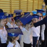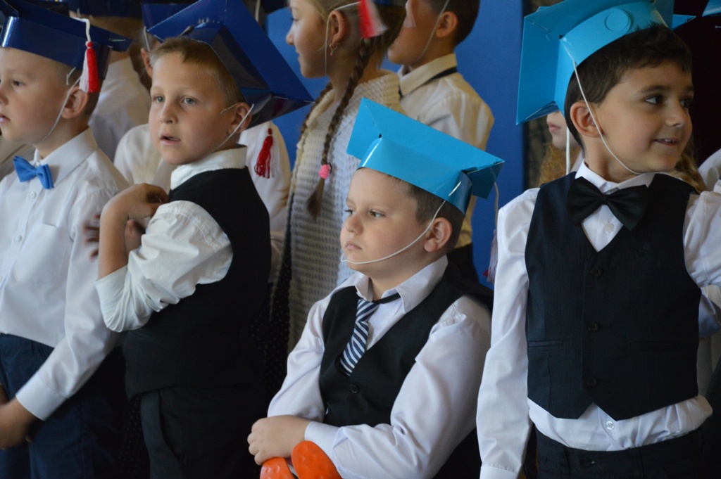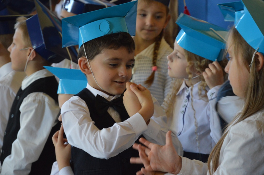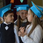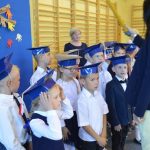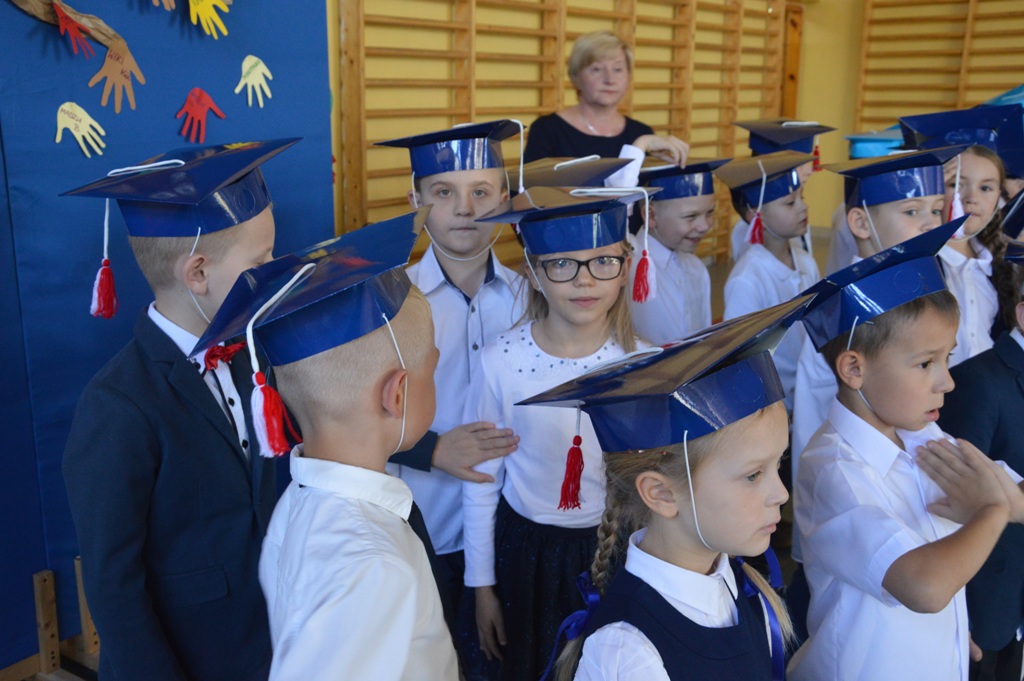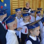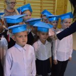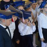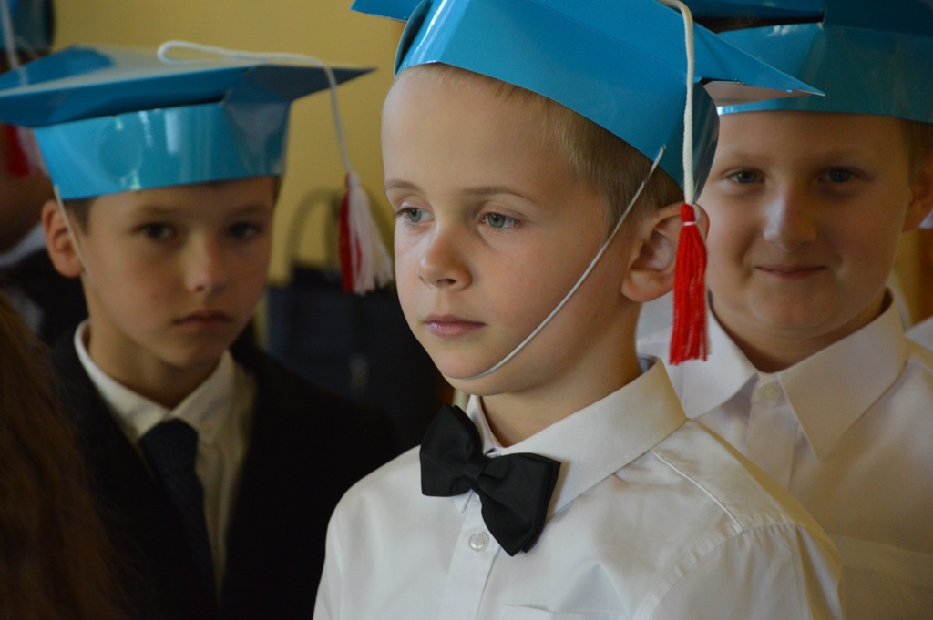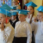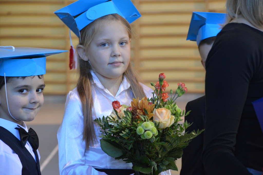 Następnie dzieci przeszły wraz z wychowawczyniami i rodzicami do swoich sal, gdzie czekały na nie pamiątkowe dyplomy, rożki obfitości ze słodyczami, szkolne legitymacje oraz identyfikatory. Wszystko to wręczyły panie wychowawczynie wraz z życzeniami samych piątek i szóstek oraz miłych chwil wspólnie spędzanych w szkole na nauce i zabawie. Rodzice także nie zapomnieli o małym „co nieco” dla swoich pociech.
