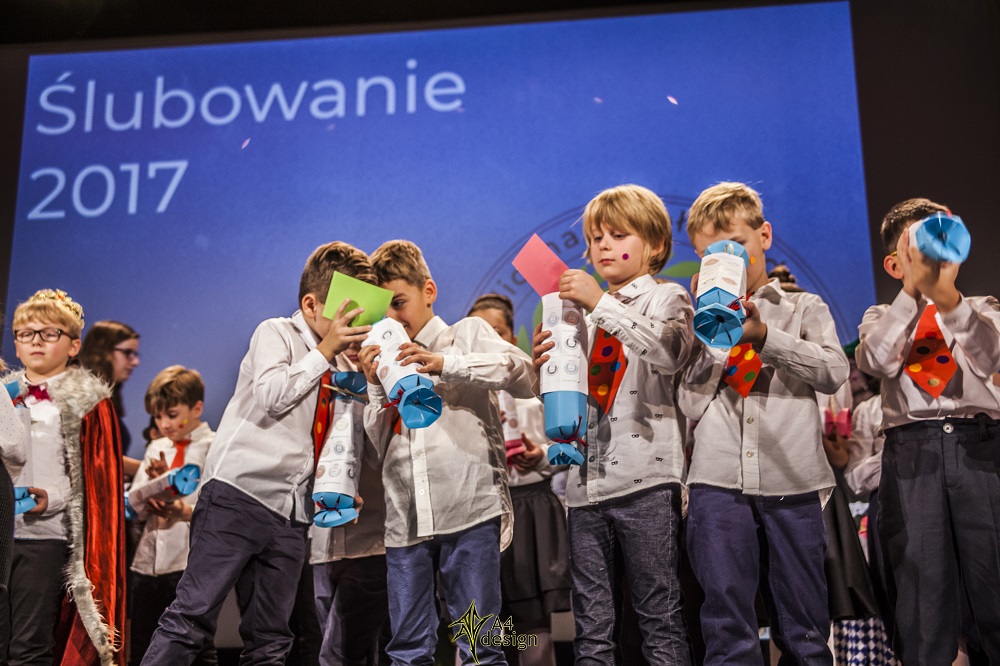 Tego dnia kino gościło Wiceprzewodniczącego Rady Miejskiej Pana Andrzeja Stawiarskiego, Przewodniczącą Rady Rodziców Panią Agnieszkę  Tyrpak, rodziców, dziadków, uczniów,  a nawet absolwentów, którzy jak się okazuje, co roku pamiętają o tej uroczystości,  a ze szkołą łączą miłe wspomnienia . Uroczystość ślubowania połączyła tradycje obu szkół, korzystając z doświadczeń Prywatnego Gimnazjum.