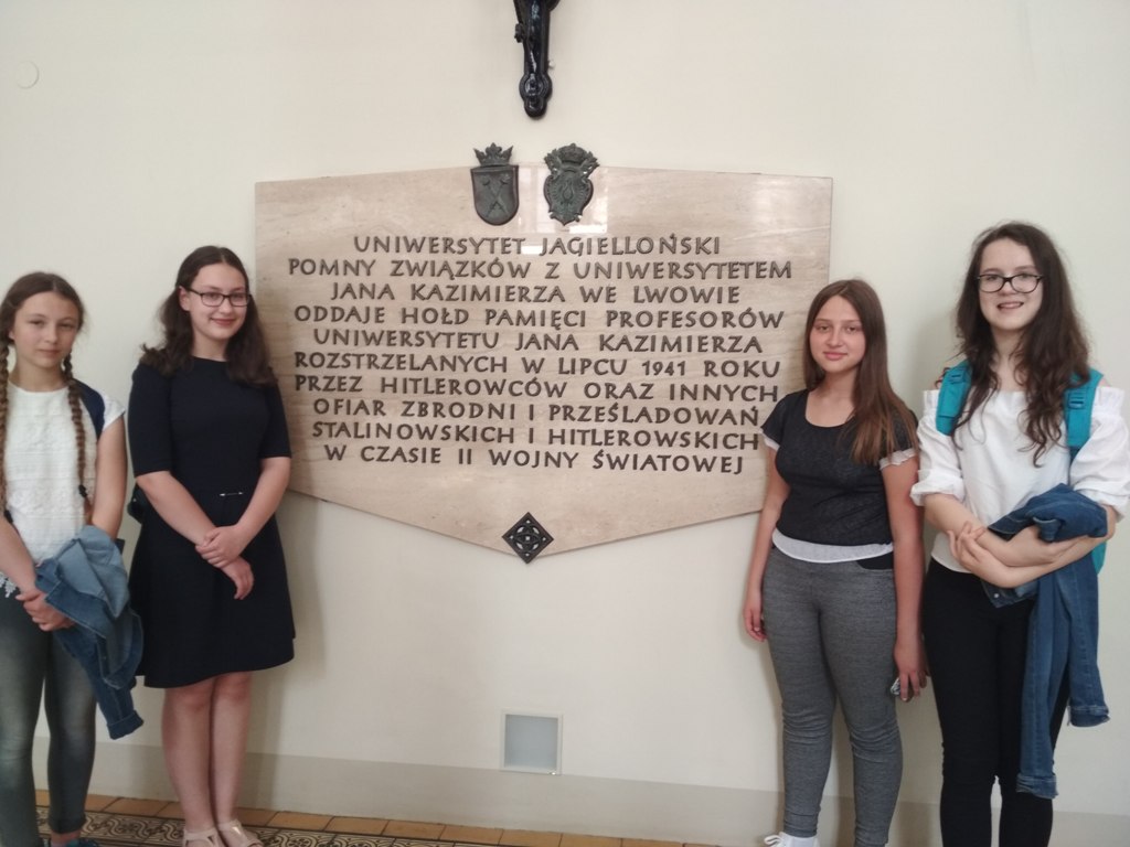 Wychowankom Szkoły Podstawowej nr 1 im. ks. prof. Józefa Tischnera w Starym Sączu towarzyszyły koordynatorki  projektu edukacyjnego „Przygoda z nauką w murach UJ”: mgr Renata Jasińska Nowacka i mgr Jadwiga Postawa.