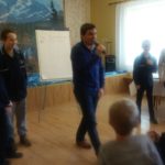 Po przywitaniu pan Łukasz Dębski zaproponował dzieciom „hardkorowe zabawy”, czym od razu zaskarbił sobie przychylność i uwagę młodych czytelników. Autor odczytywał utwory z Wierszownika z podróży dookoła świata, dzięki czemu zabierał młodych słuchaczy w podróż w wyobraźni po różnych krajach, nie tylko europejskich. Uczniowie z bohaterami wierszy, najczęściej zwierzęcymi, przemierzali kontynenty, zapamiętując elementy charakterystyczne dla danego państwa i bawiąc się przy tym doskonale. Literackie podróżowanie gość przeplatał z innymi zabawami: rymowankami, literackimi łamigłówkami. Dużą frajdę sprawiło dzieciom „wywołanie do tablicy” nauczycieli, którzy musieli odczytywać na czas wierszyki – łamańce językowe. Wielkie zaciekawienie zebranych wywołała zabawa w detektywów, podczas której dwie grupy uczniów, wcielających się w super agentów, musiały rozwiązać niełatwą zagadkę kryminalną. W tej konkurencji zwyciężyły dziewczęta, które nagrodzono rzęsistymi brawami.