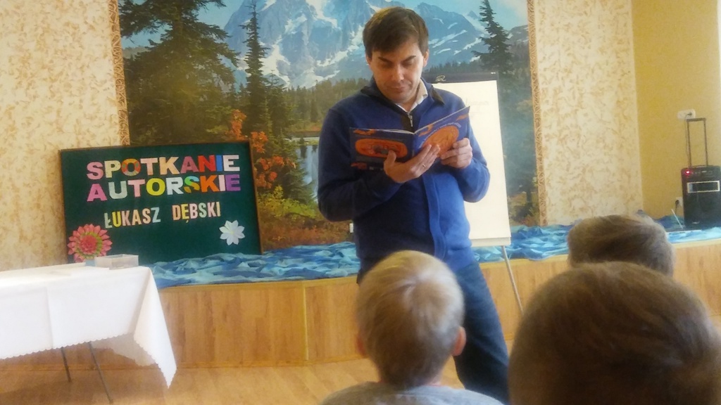 21 lutego 2017 r. uczniowie klas IV-VI ze Szkoły Podstawowej im. Ks. Prałata Płk. Tadeusza Dłubacza w Moszczenicy udali się na spotkanie z pisarzem i poetą Łukaszem Dębskim, które odbyło się w bibliotece w Moszczenicy Wyżnej w ramach projektu „Kultura w Sołectwach – edycja trzecia”, finansowanego przez Centrum Kultury i Sztuki w Starym Sączu.