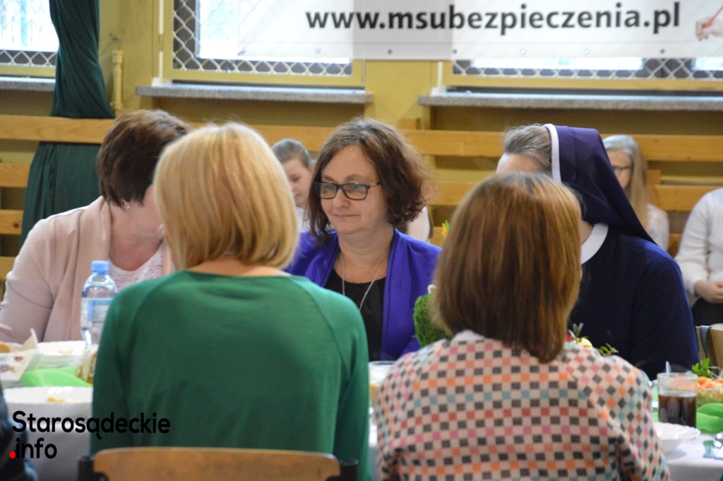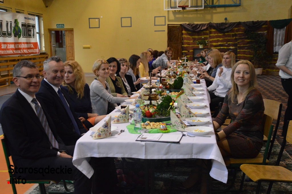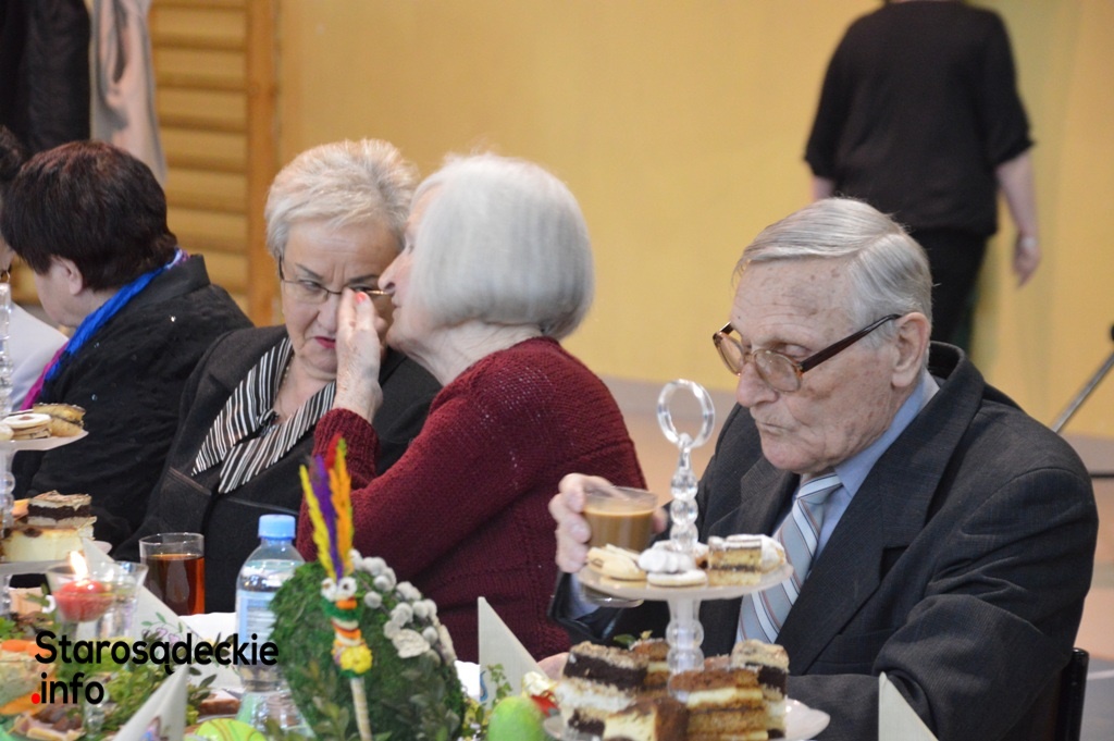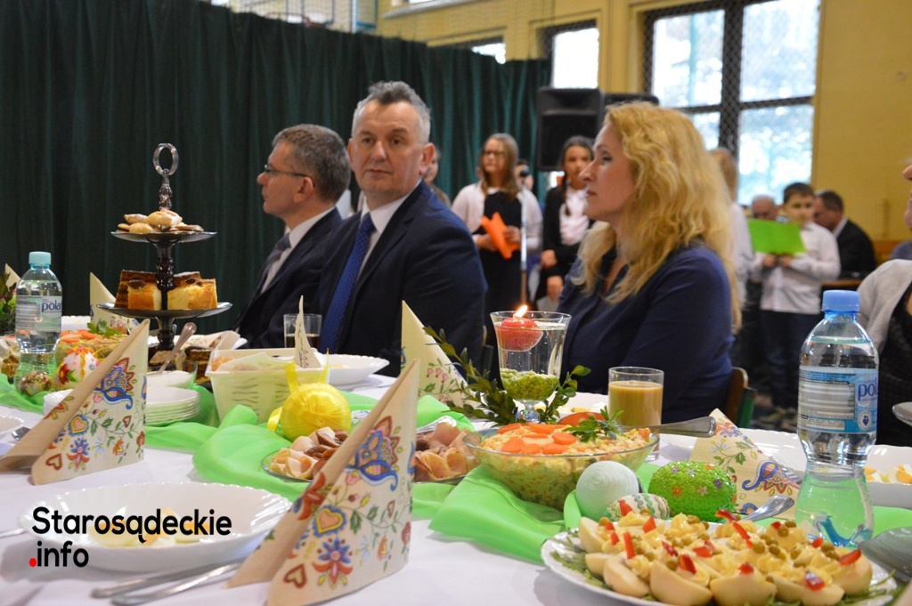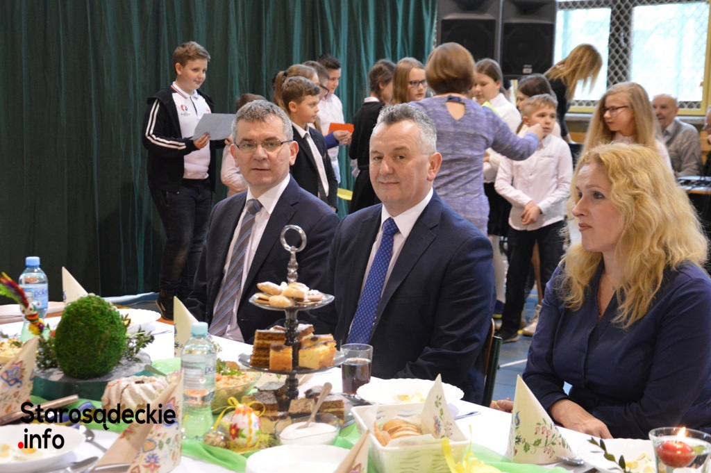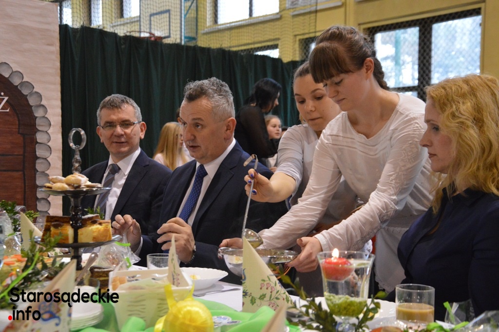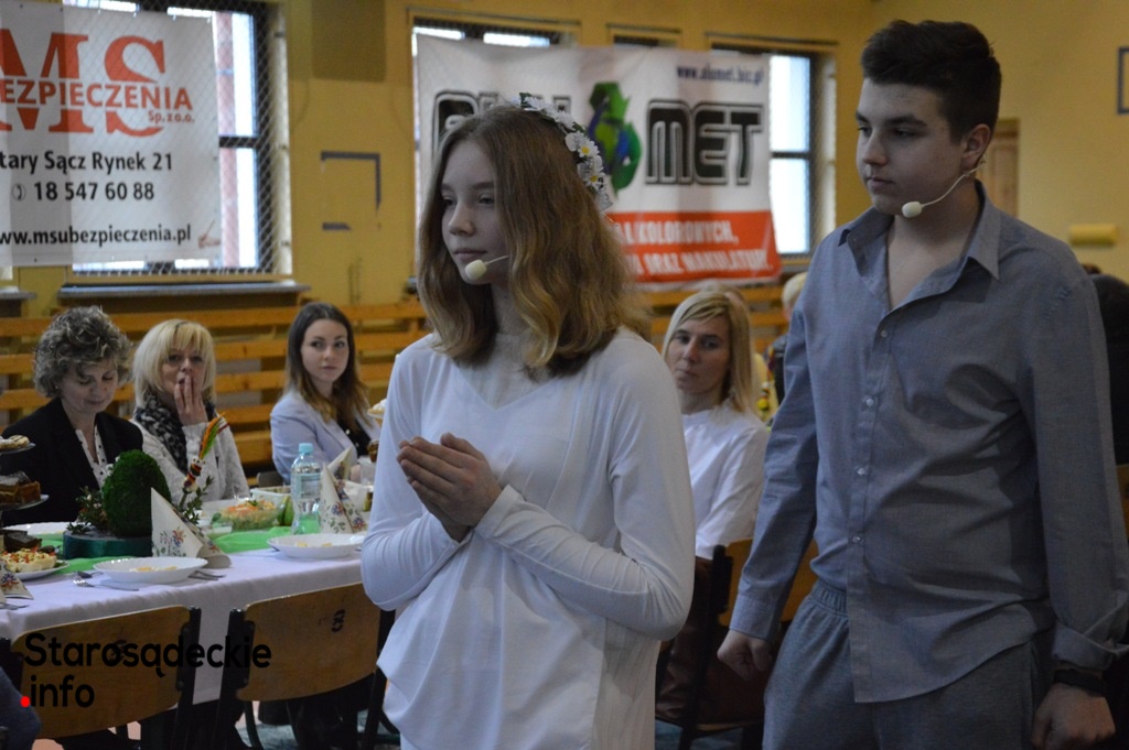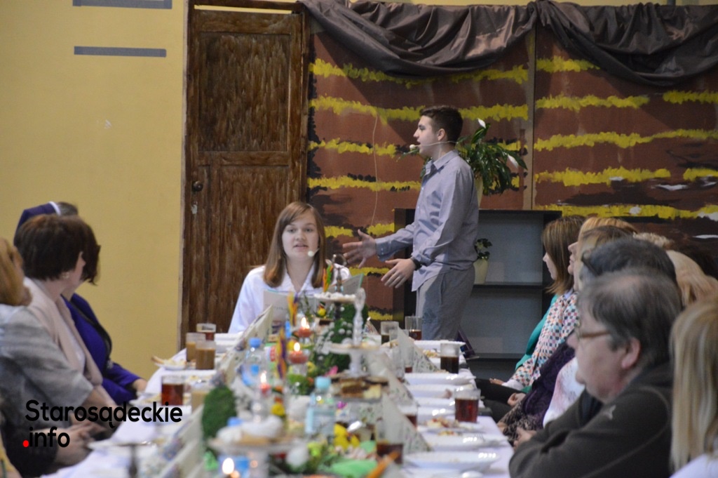 Po przedstawieniu odbyła się krótka „uczta paschalna”, w czasie której płynęły gorące życzenia od przybyłych gości. O profesjonalną obsługę zadbały uczennice klasy gastronomicznej z Zespołu Szkół Ponadgimnazjalnych w Starym Sączu. Miłym rozmowom, wspomnieniom emerytowanych nauczycieli, przysłuchiwali się z ciekawością nauczyciele, którzy bardzo lubią gościć ich w progach swojej szkoły. Zobacz „Spotkanie wigilijne w Dwójce”