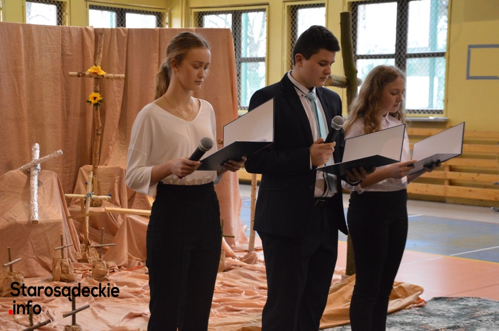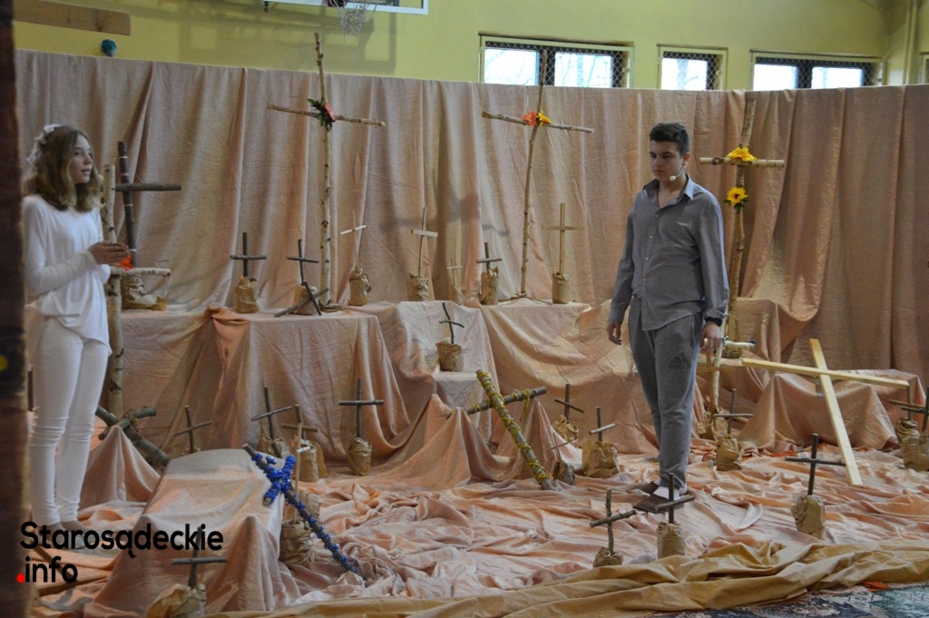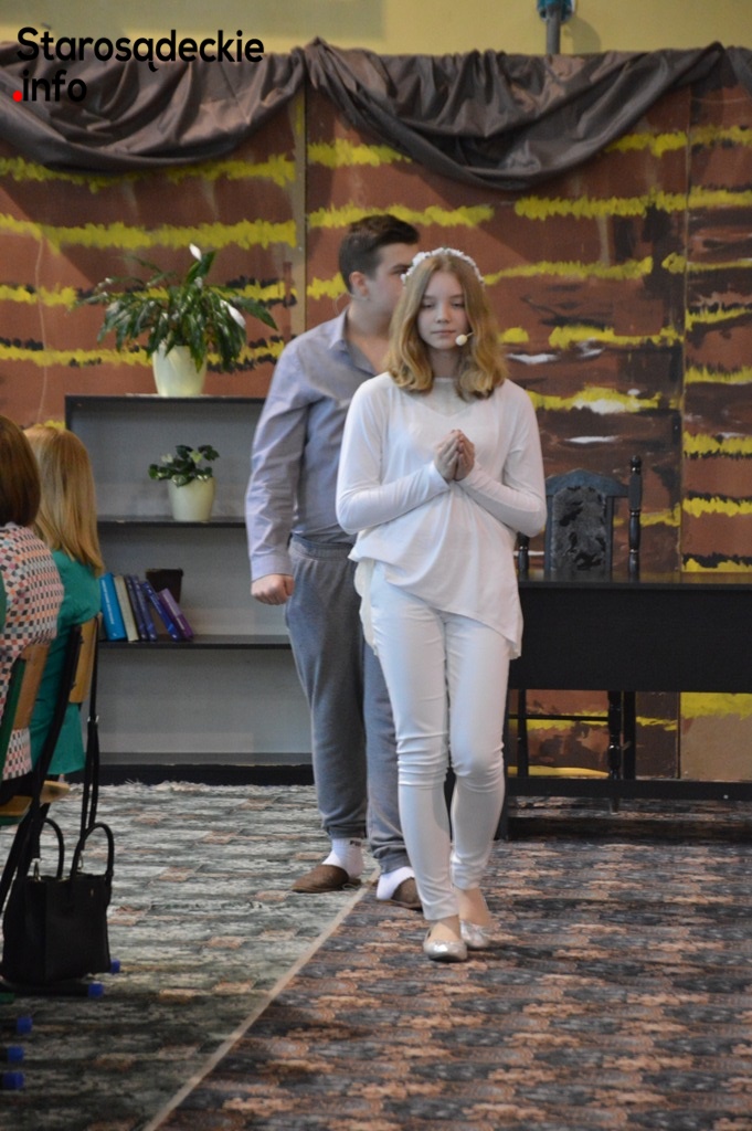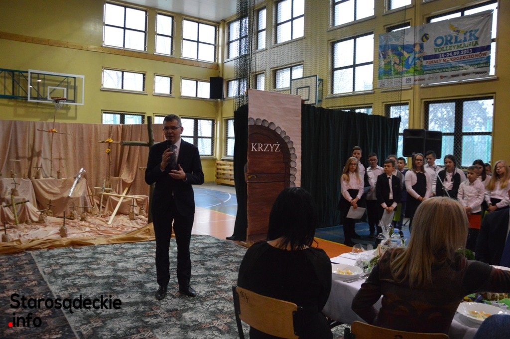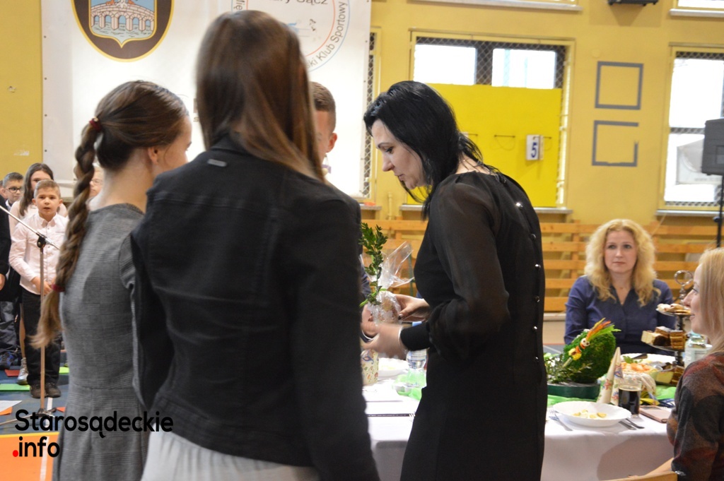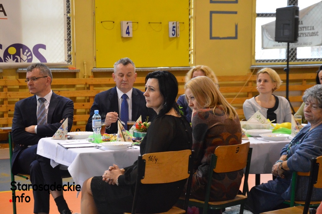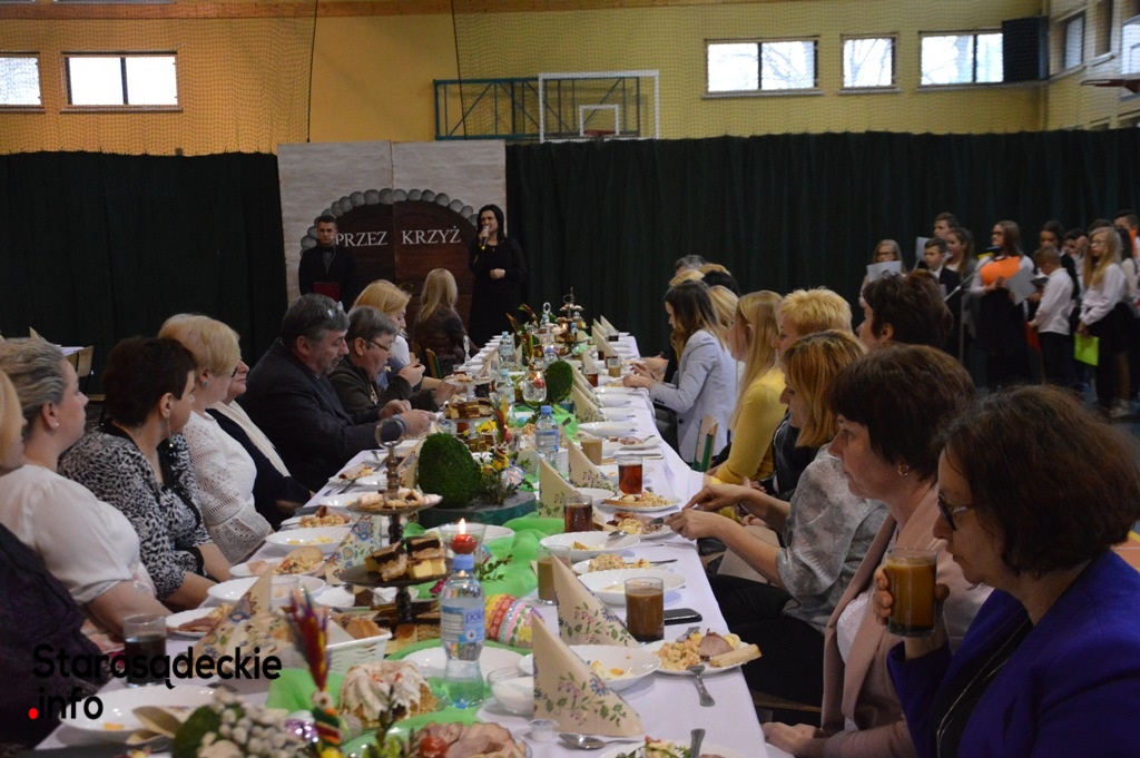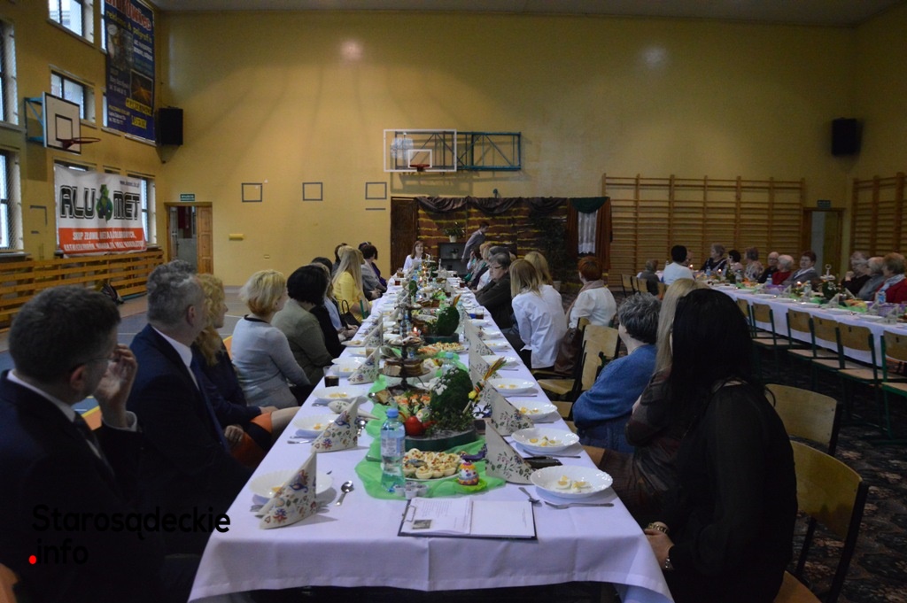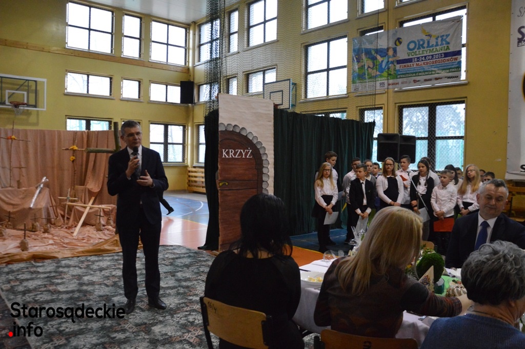 Po przedstawieniu odbyła się krótka „uczta paschalna”, w czasie której płynęły gorące życzenia od przybyłych gości. O profesjonalną obsługę zadbały uczennice klasy gastronomicznej z Zespołu Szkół Ponadgimnazjalnych w Starym Sączu. Miłym rozmowom, wspomnieniom emerytowanych nauczycieli, przysłuchiwali się z ciekawością nauczyciele, którzy bardzo lubią gościć ich w progach swojej szkoły. Zobacz „Spotkanie wigilijne w Dwójce”