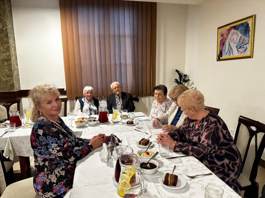 Po oficjalnej części przyszła pora na uroczysty obiad i słodki poczęstunek, które sprzyjały rozmowom i wspomnieniom. Nie zabrakło także tańców i wspólnej zabawy – atmosfera była pełna radości, ciepła i wzajemnej życzliwości.