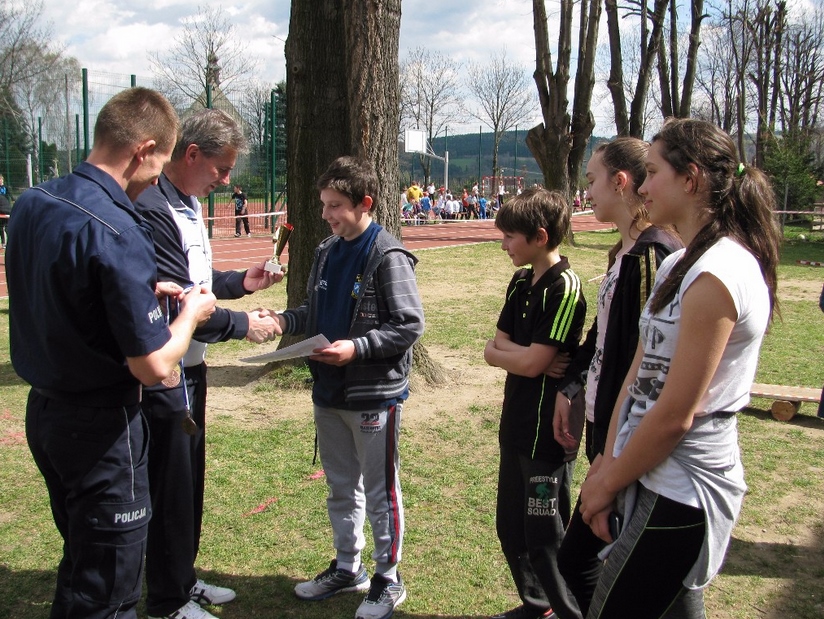 Duże podziękowania kierujemy w stronę przedstawicieli Policji ze Starego Sącza Panu st. asp. Wacławowi Fedce i Panu mł. asp. Stefanowi Jareckiemu za pomoc w przeprowadzeniu eliminacji i czuwanie nad prawidłowością przebiegu współzawodnictwa w trakcie konkursu.