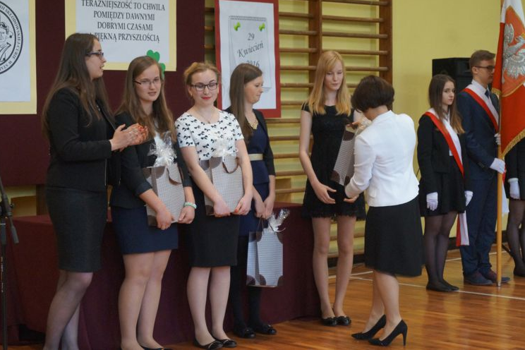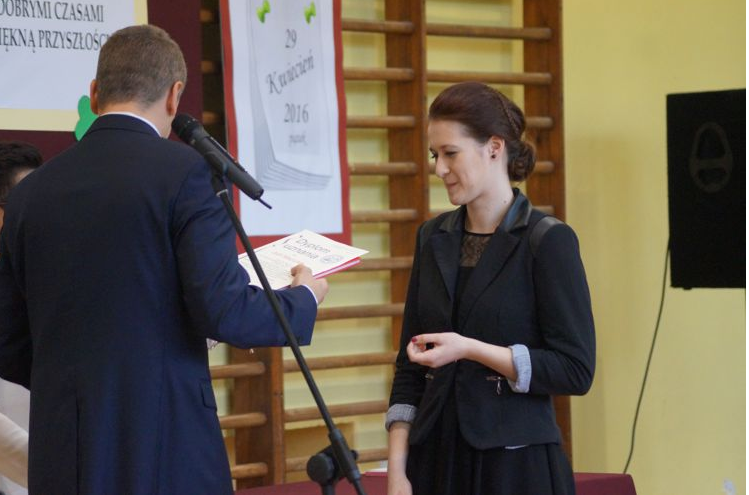 Nie zapomniano także o tych, którzy wykazali się działalnością na rzecz szkoły i środowiska, reprezentowali szkołę w rozmaitych konkursach, zawodach i przedsięwzięciach. Oczywiście Samorząd Szkolny, jak wieloletnia tradycja nakazuje, wręczył maturzystom symboliczny upominek, życząc powodzenia na egzaminach.