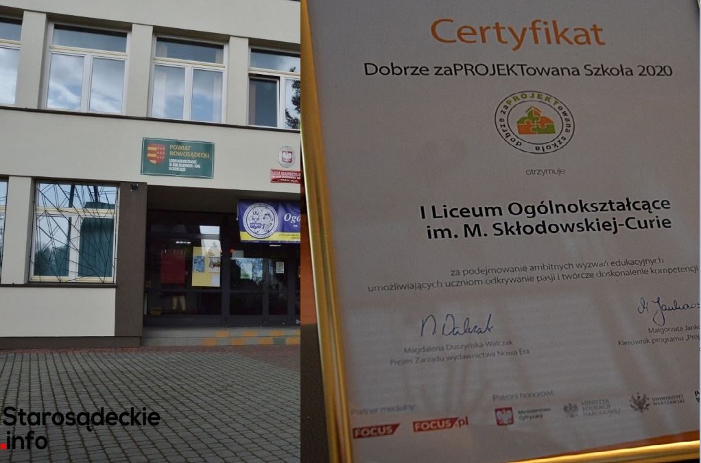 Starosądeckie LICEUM z certyfikatem „Dobrze zaprojektowanej Szkoły”