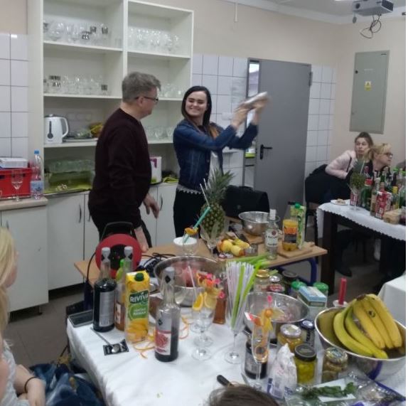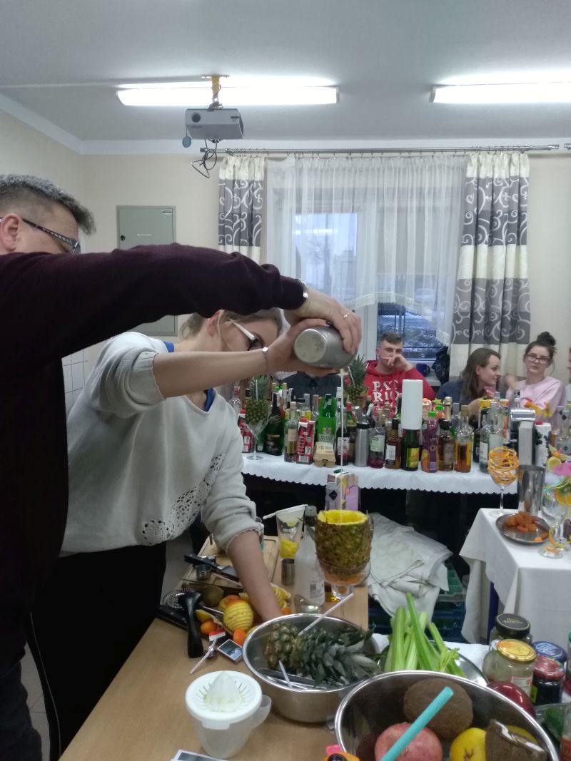 Pod okiem nauczycieli i praktyka w tej dziedzinie uczniowie zdobyli wiedzę i umiejętności z zakresu sporządzania różnych drinków oraz ich garnirowania. Asortyment napojów, syropów, dodatków był olbrzymi, a wrażenia wzrokowe i smakowe niesamowite, a przy tym wymagające mnóstwa pracy i nowych informacji. Kurs zakończył się pokazem drinków płonących. Potwierdzeniem zdobycia nowych umiejętności jest certyfikat, który zaświadcza, że uczniowie zdobyli nowe umiejętności z zakresu barmaństwa.