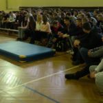 Licznie zgromadzeni na sali gimnastycznej uczniowie z wielkim zainteresowaniem słuchali wspomnień o życiu księdza profesora Józefa Tischnera. A były to niezwykłe historie… O tym, jak po spakowaniu do walizki koszuli non-iron i krawatu na gumkę z papugą pan Kazimierz wyruszył ze wsi Łopuszna na studia do Krakowa, gdzie zamieszkał z najstarszym bratem. O kursie dobrego wychowania i tańca, który zafundował mu ksiądz profesor oraz jak pod nadzorem starszych braci wybrał się na randkę do teatru.