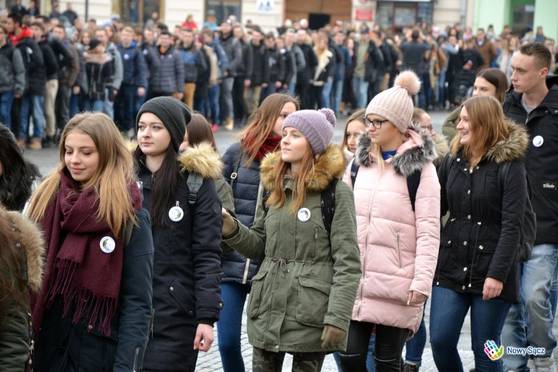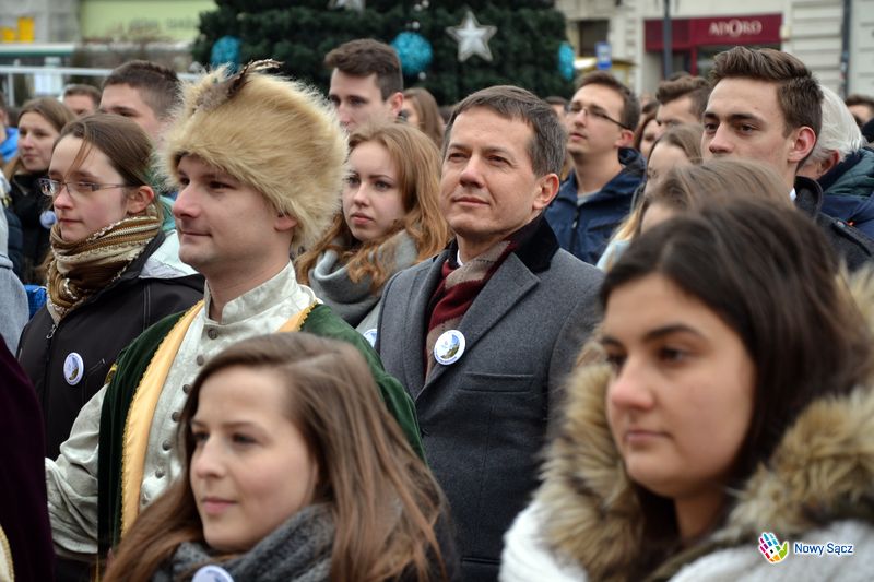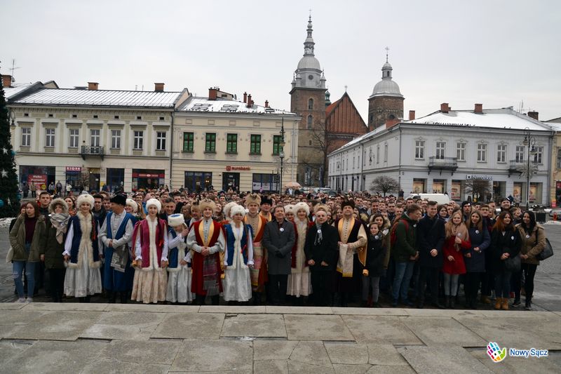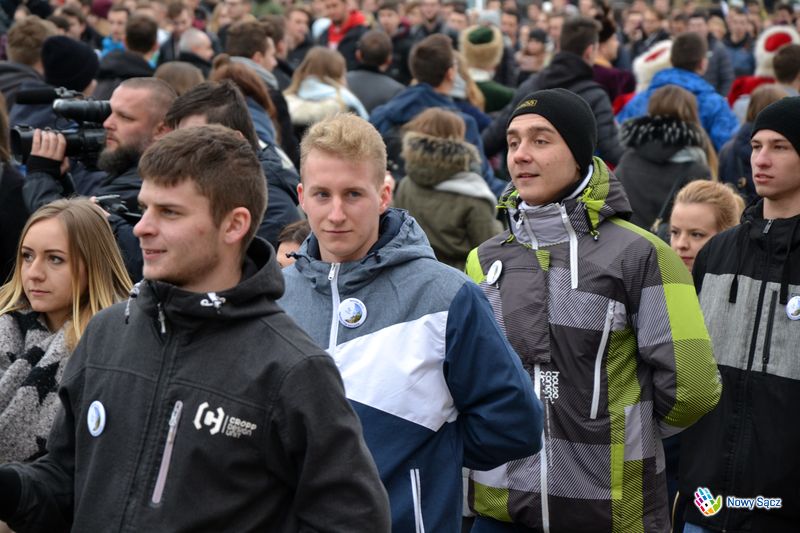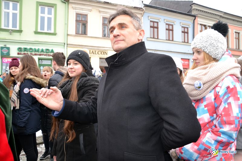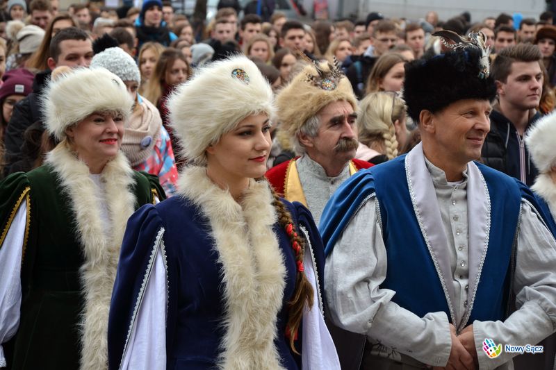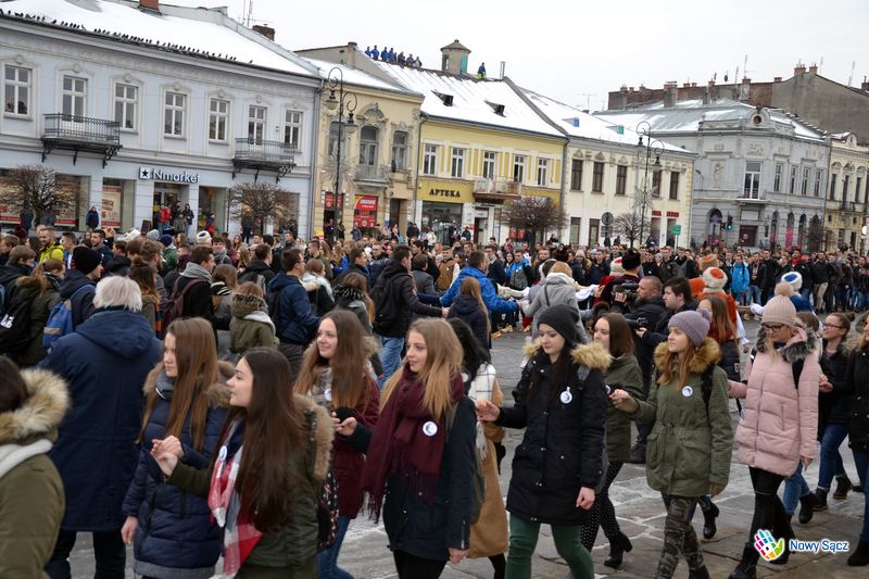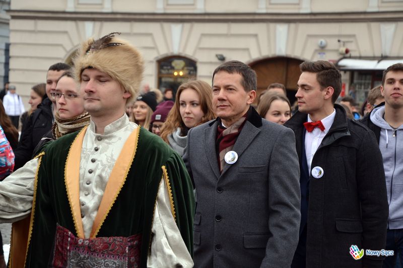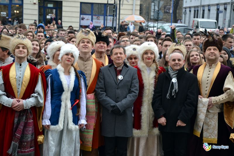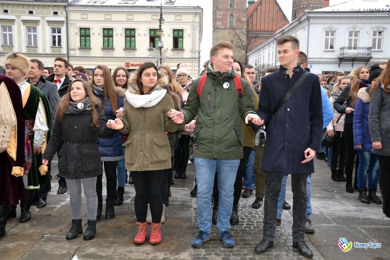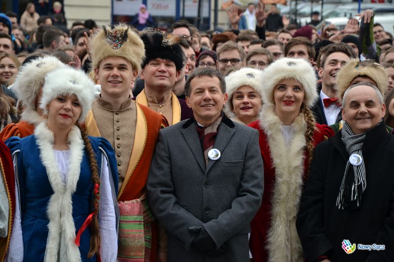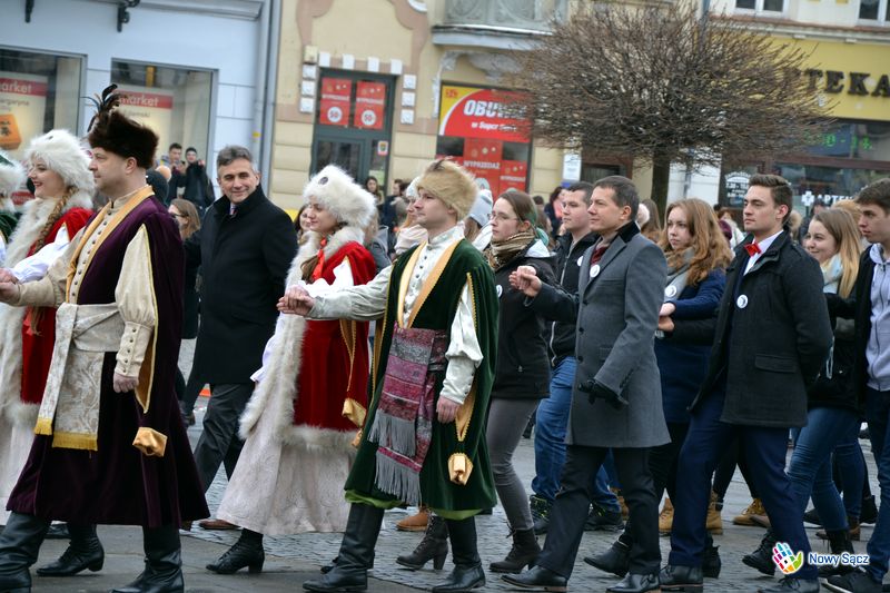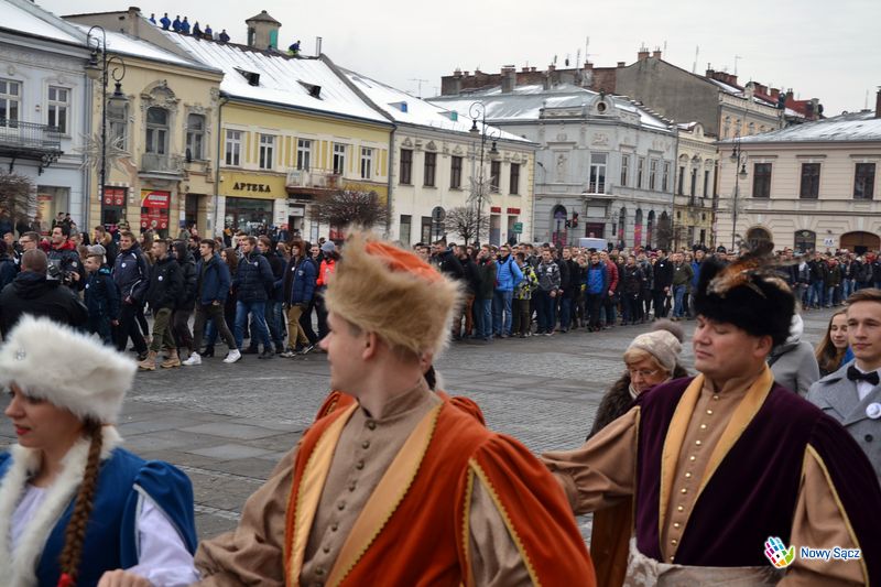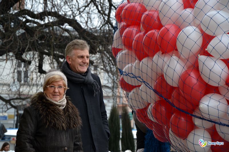Polonez pod Ratuszem rozpoczyna nowosądeckie obchody stulecia odzyskania niepodległości. Symbolem tej rocznicy było wypuszczenie w niebo pęku biało-czerwonych baloników. Do  pamiętnej daty 2018 roku nawiązał zastępca prezydenta. – Gratuluję wam wspaniałego wykonania poloneza w tym szczególnym momencie, gdy inaugurujemy obchody stulecia odzyskania niepodległości przez Polskę. Można powiedzieć, że zostaliście przez historię wyróżnieni i ze świadomością tego wyróżnienia idźcie dalej w życie – zakończył Wojciech Piech.