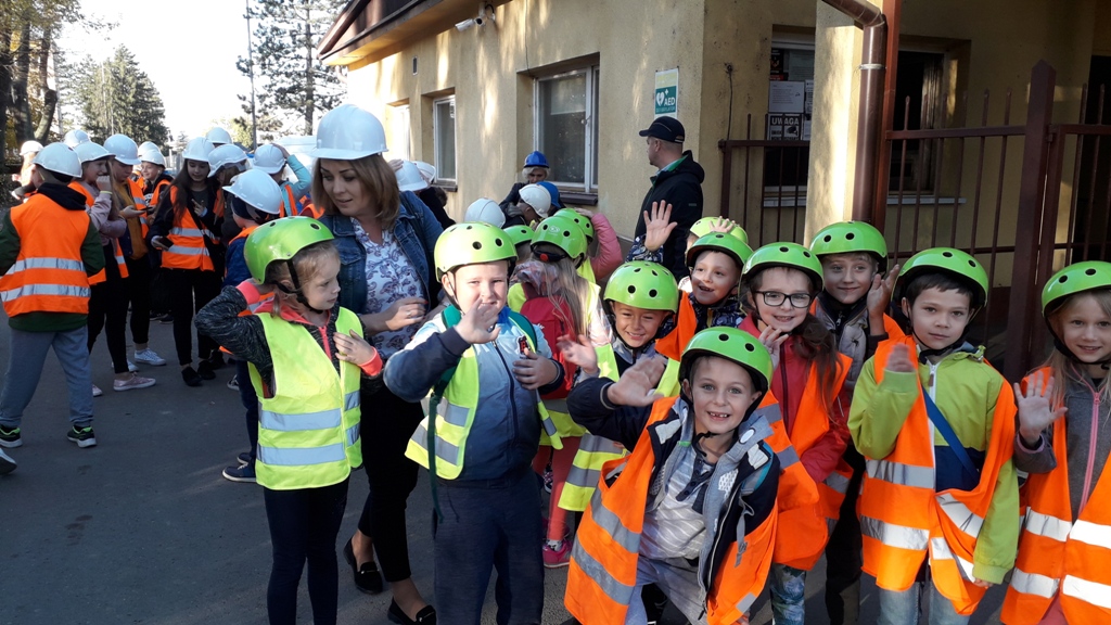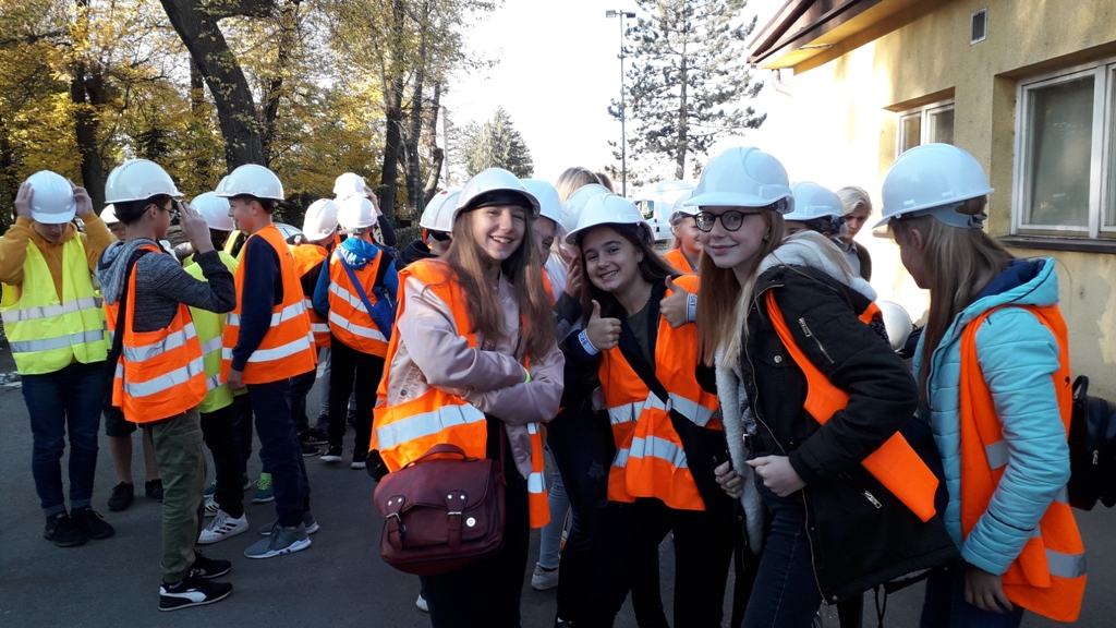 Przed wycieczką po zakładzie, każdy uczeń dostał kask ochronny, kamizelkę odblaskową oraz odbyło się krótkie szkolenie BHP dotyczące bezpiecznego poruszania się po terenie zakładu. Uczniowie obejrzeli również prezentację dotyczącą historii firmy oraz zostali zapoznani z jej działalnością.