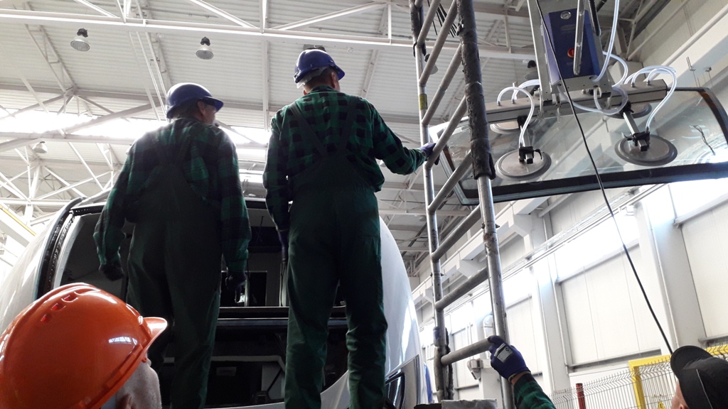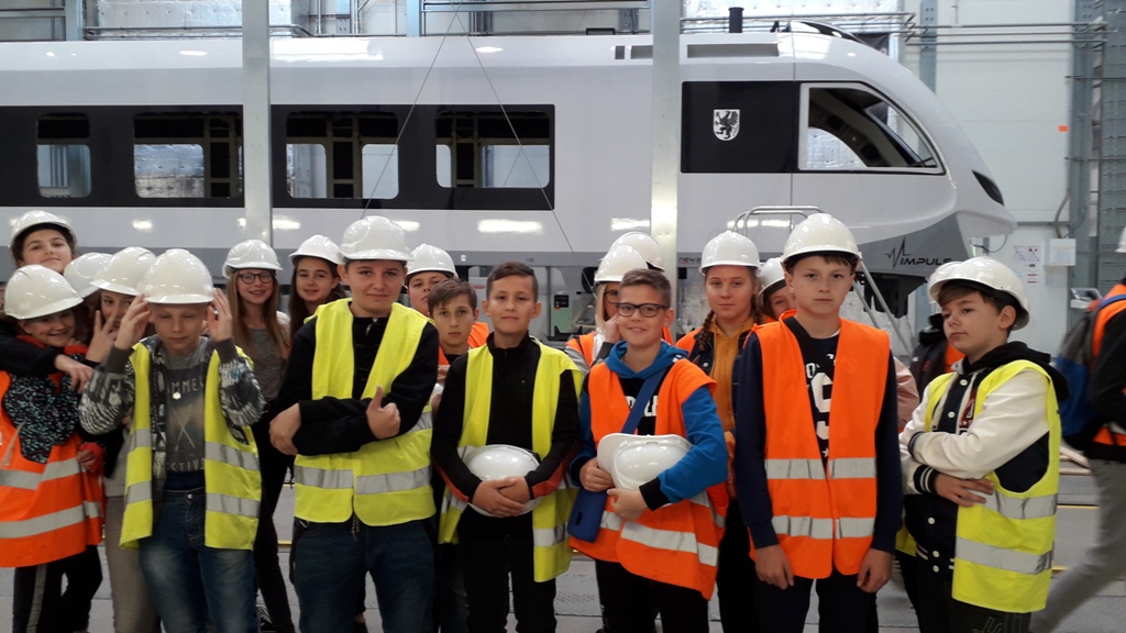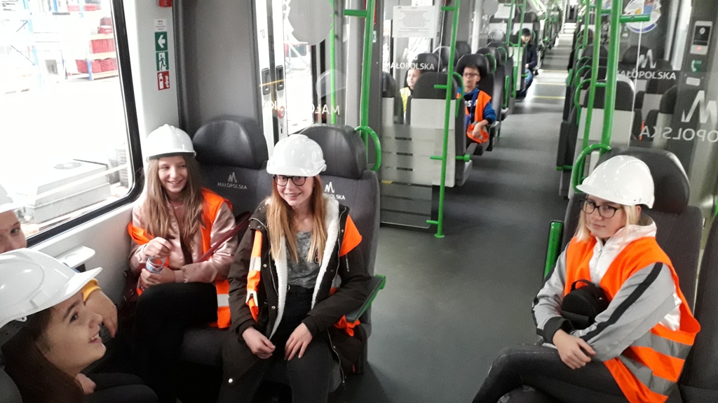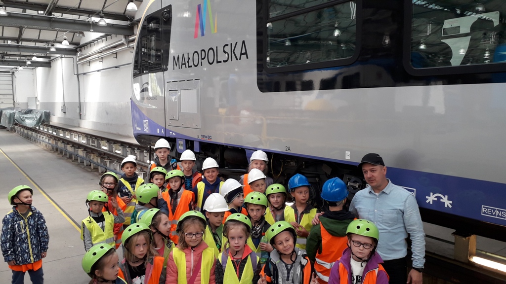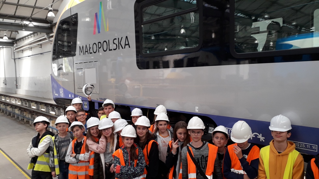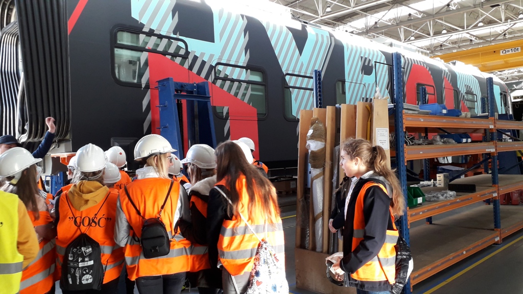 Kolejnym etapem wycieczki było zwiedzanie hal produkcyjnych. Uczestnicy poznali proces budowy największych i najbardziej nowoczesnych składów kolejowych w naszym kraju. Zwiedzający byli pod wielkim wrażeniem, że tak nowoczesna firma produkująca takie piękne pociągi znajduje się w Nowym Sączu. Dodatkową atrakcją była możliwość wejścia do nowych pociągów oraz zwiedzanie zautomatyzowanych kabin maszynistów. Na koniec zostały wykonane pamiątkowe zdjęcia a uczestnicy otrzymali firmowe gadżety.