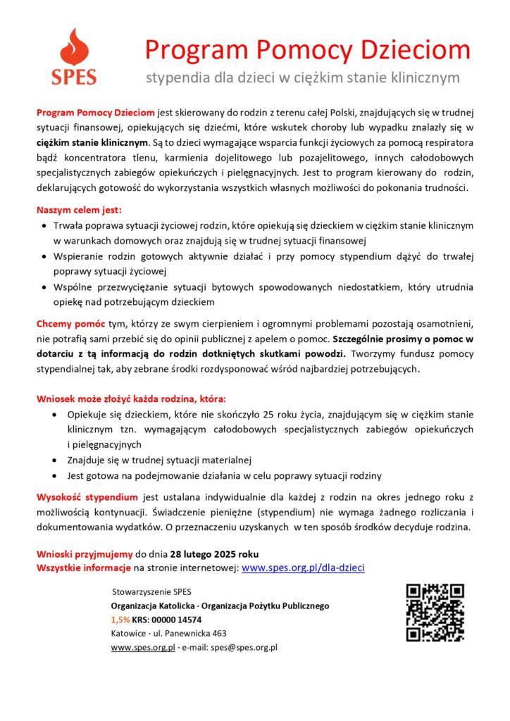 Więcej informacji i formularz zgłoszeniowy: www.spes.org.pl/dla-dzieci