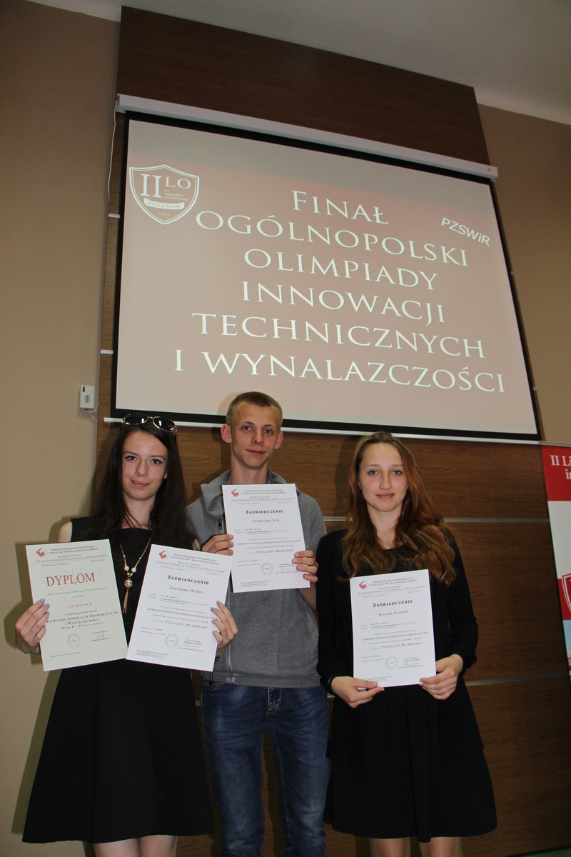Po sukces jechali daleko, bo aż do Koszalina. Tam odbyła się finałowa rywalizacja Ogólnopolskiej Olimpiady Innowacji Technicznych i Wynalazczości. Należy do najtrudniejszych w kraju, gdyż ma interdyscyplinarny charakter.  Wymaga więc od uczniów szerokiej wiedzy z zakresu prawa, historii, ekonomii, fizyki, budownictwa, mechaniki, automatyki, matematyki, informatyki i ochrony środowiska.