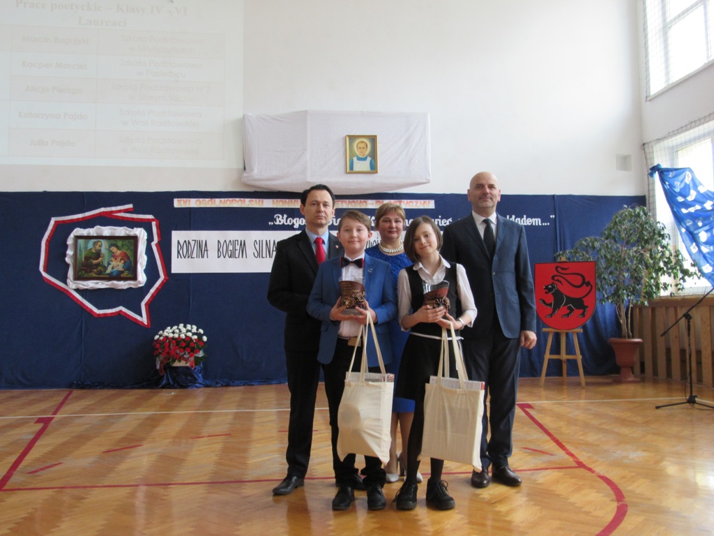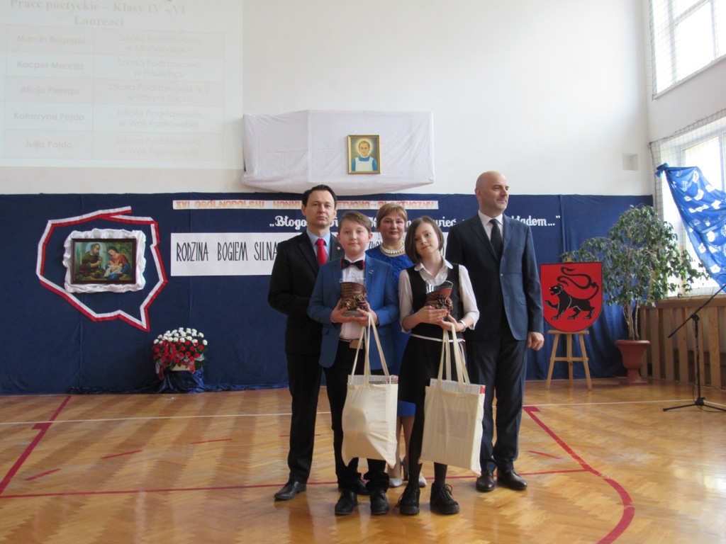 Alicja Pierzga, uczennica klasy Va w Szkole Podstawowej nr 2 im Juliusza Słowackiego w Starym Sączu, zdobyła II miejsce na szczeblu ogólnopolskim w kategorii prac poetyckich (klasy IV-VI) za wiersz „Rodzina (nie)idealna”. Do Woli Radłowskiej ze Szkoły Podstawowej nr 2 w Starym Sączu zostały także wysłane prace plastyczne wszystkich uczniów z klasy Va, wykonane w ramach zajęć z wychowawcą, a także praca uczennicy z kl. IVa. Finał konkursu odbył się 14 marca 2019 roku w Zespole Szkolno-Przedszkolnym w Woli Radłowskiej. Wzięli w nim również udział: Włodzimierz Kowalik , Weronika Golonka , Wiktoria Damasiewicz, Zuzanna Garwol oraz Szymon Kostrzeba, czyli uczniowie wyróżnieni przez szkolnego koordynatora konkursu, którzy odebrali dwa dyplomy uznania dla Szkoły Podstawowej nr 2 im. Juliusza Słowackiego w Starym Sączu za udział w XVI Ogólnopolskim Konkursie Poetycko-Plastycznym w części poetyckiej i plastycznej. Otrzymane dyplomy uznania znajdą się w kronice szkoły. Nagrodzony wiersz Alicji Pierzgi został oficjalnie odczytany podczas finału konkursu, a także pojawił się w pokonkursowej publikacji prezentującej nagrodzone wiersze i prace plastyczne, które można było obejrzeć podczas wernisażu odbywającego się w trakcie trwania finału. Uczniowie ze starosądeckiej „Dwójki” z przejęciem wpisali się również do księgi pamiątkowej XVI Ogólnopolskiego Konkursu Poetycko-Plastycznego i zapowiedzieli, iż za rok wezmą udział w siedemnastej już edycji konkursu.