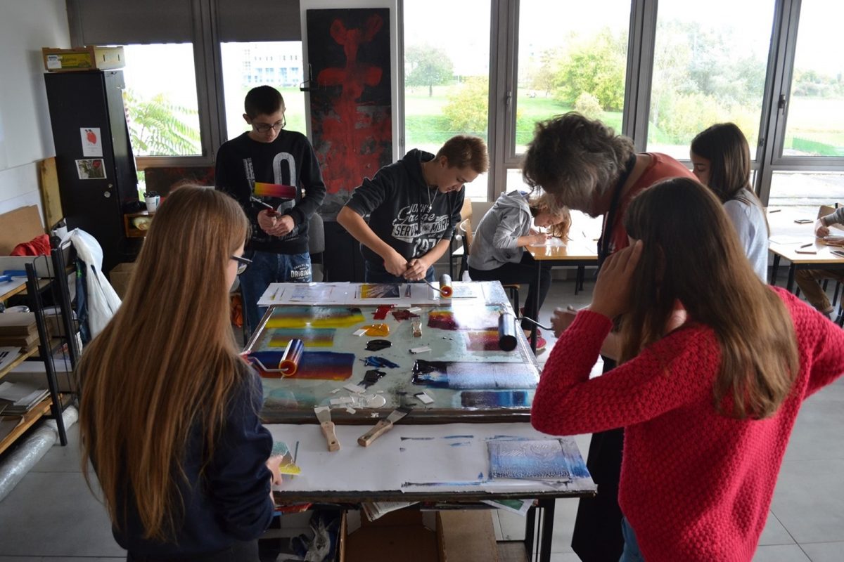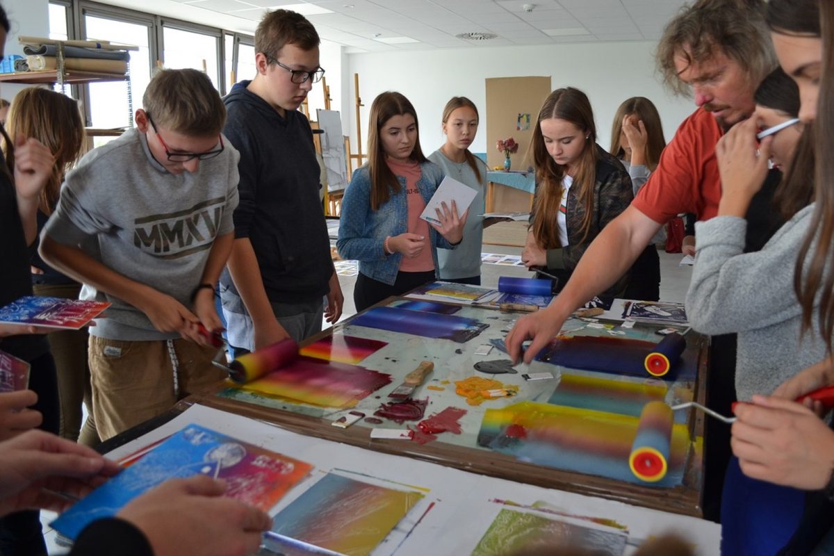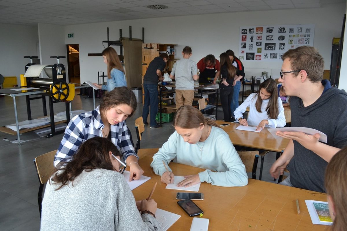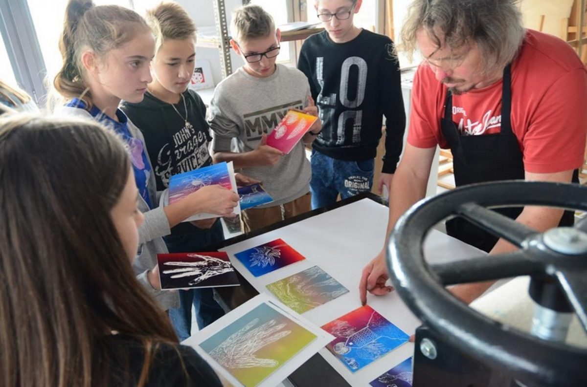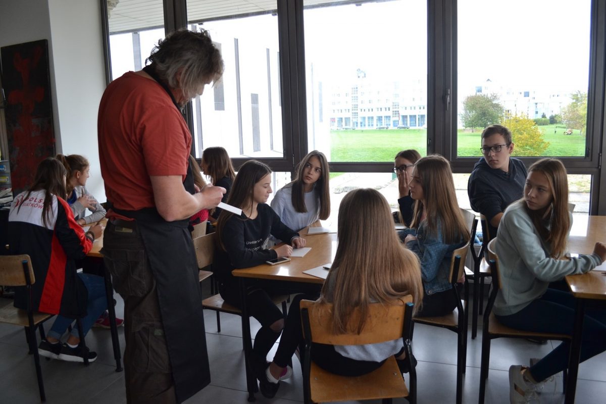 13 października 2017 r. uczniowie z Gołkowic i Barcic, którzy biorą udział w projekcie „Synapsy – Spacery po śladach” pojechali do Nowohuckiego Centrum Kultury w Krakowie. Tam wzięliśmy udział w warsztatach z grafiki artystycznej przeprowadzonej przez Jana Bosaka. Gimnazjaliści mieli okazję działać w profesjonalnej pracowni graficznej i wykonywali odbitki swoich prac na prasie drukarskiej. Inspiracją do powstania tych wielokolorowych dzieł były legendy i postacie związane z miejscami, które odwiedzaliśmy podczas wycieczek. Bawiliśmy się świetnie!!!!!