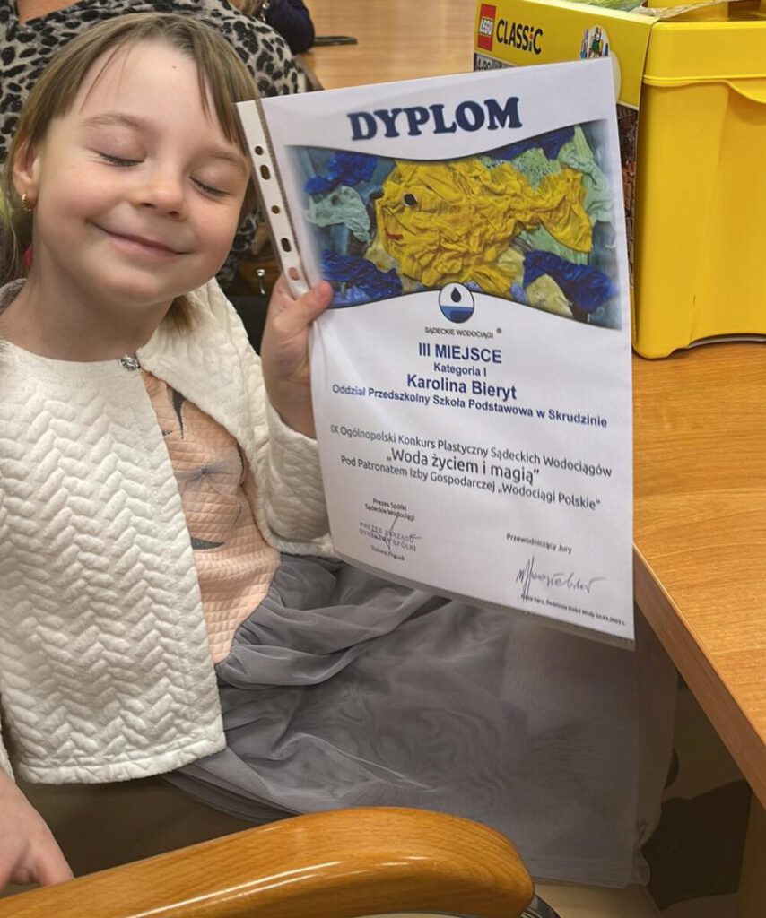 Laura Klimek uczennica klasy VIII zajęła I miejsce a Karolina Bieryt z oddziału przedszkolnego III miejsce. Laureatki odebrały nagrody w siedzibie Sądeckich Wodociągów.