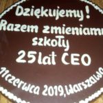 -Nasza ciężka praca zaowocowała kolejnym sukcesem- zostaliśmy zaproszeni na Ogólnopolską Prezentację Projektów Młodzieżowych do Warszawy połączoną z obchodami 25 lat istnienia CEO -mówi Elżbieta Kosiba – Na ogólnopolską prezentację z całej Polski zostało zaproszonych łącznie 65 szkół, a wśród nich była nasza szkoła. 11 czerwca 2019r dwa zespoły projektowe z naszej szkoły prezentowały się w Arkadach Kubickiego na Zamku Królewskim w Warszawie. Uroczyste otwarcie miało miejsce w Sali głównej balowej Zamku Królewskiego. Oficjalnego otwarcia dokonał prezes fundacji CEO Jędrzej Witkowski. Każdy zespół projektowy prezentował się przed ekspertami z realizacji wykonanych zadań. Na uwagę zasługuje fakt, iż naszą szkołę reprezentowały aż dwa zespoły projektowe ze względu na wyróżniające się działania. Dodatkowym zadaniem dla zespołów projektowych była także promocja swojego regionu. Nasze zespoły projektowe przygotowały wiele przysmaków pochodzących z naszego regionu. Ponadto na okoliczność tej uroczystości uczniowie przygotowali foldery o swojej szkole i miejscowości, piosenki, taniec oraz stroje regionalne. Podczas trwania OPPM-u uczniowie oraz ich opiekunowie mogli wymieniać ze sobą zdobyte doświadczenia w czasie realizacji podobnych i nowych zadań projektowych.