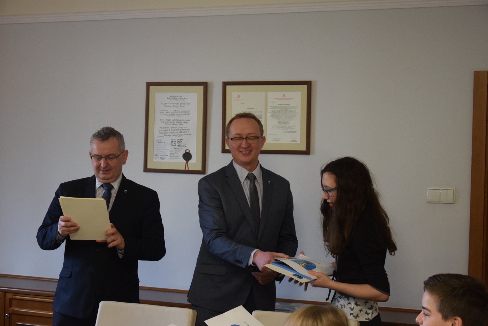 Uczniowie spotkali się również z zastępcą burmistrza Kazimierzem Gizickim i sekretarzem Danielem Śmierciakiem, by porozmawiać o zasadach na jakich działa urząd i jakimi zadaniami się zajmuje: od tych najmniejszych, aż po wielomilionowe inwestycje, które ułatwiają życie, czy poprawiają bezpieczeństwo. Dostali też pamiatkowe dyplomy.