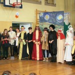 Po przedstawieniu Pan Dyrektor, Samorząd Uczniowski i inne organizacje szkolne złożyli życzenia wszystkim zebranym. Na koniec wspólnie pokolędowaliśmy przeżywając radość Bożego Narodzenia. Następnie uczniowie wraz z wychowawcami rozeszli się do klas, aby połamać się opłatkiem.