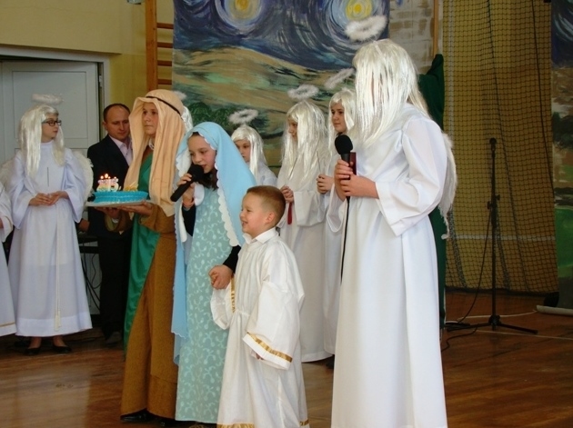 Ogromnie dziękuję wszystkim, którzy przyczynili się swoją pomocą, otwartością i życzliwością do powstania części artystycznej. Szczególne podziękowania dla Pani Anny Figarskiej za cały wkład pracy w przygotowanie dekoracji jasełkowej, a także Jej Mężowi za wsparcie w tym działaniu. Panu Franciszkowi Tomasiakowi za zbudowanie konstrukcji szopki oraz Panu Stefanowi – naszemu szkolnemu konserwatorowi za wszelką dyspozycyjność. Pani Danucie Rostockiej, Panu Krzysztofowi Smydzie, Pani Ewelinie Musiał, Pani Małgorzacie Jarząb, Pani Marii Bedus. Rodzicom uczniów klasy Ia, a także Pani Olszowskiej, Panu Kuligowi i Panu Motyce. Za wyrozumiałość Panu Dyrektorowi, wszystkim nauczycielom i wychowawcom, a przede wszystkim Uczniom biorącym udział w jasełkach, którzy po wielu trudach sprostali ostatecznie podjętemu działaniu. Niech Boże Dziecię – Książę Pokoju błogosławi!
