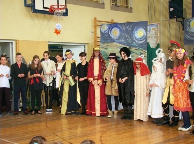 Po przedstawieniu Pan Dyrektor, Samorząd Uczniowski i inne organizacje szkolne złożyli życzenia wszystkim zebranym. Na koniec wspólnie pokolędowaliśmy przeżywając radość Bożego Narodzenia. Następnie uczniowie wraz z wychowawcami rozeszli się do klas, aby połamać się opłatkiem.