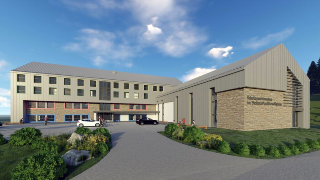 Tak po przebudowie będzie wyglądała Szkoła Podstawowa w Rytrze. Wizualizację obiektu przedstawił wójt Jan Kotarba. Inwestycja realizowana będzie ze środków rządowego programu Polski Ład. Wartość około 15 000 000 zł.