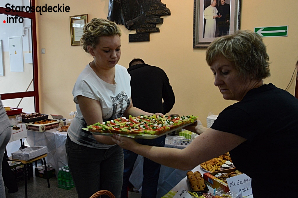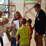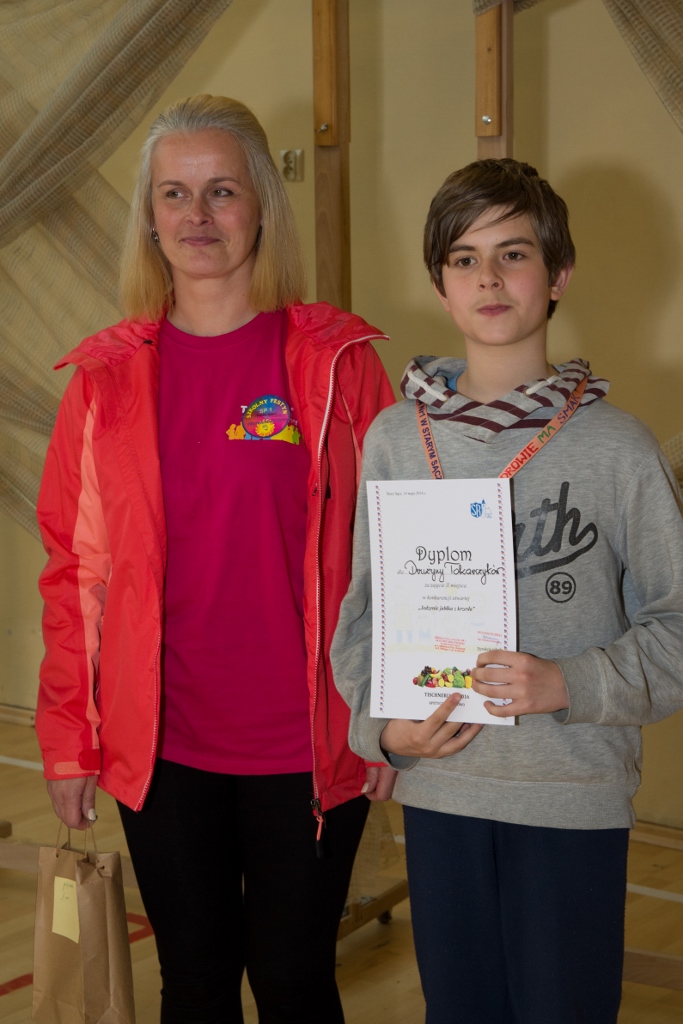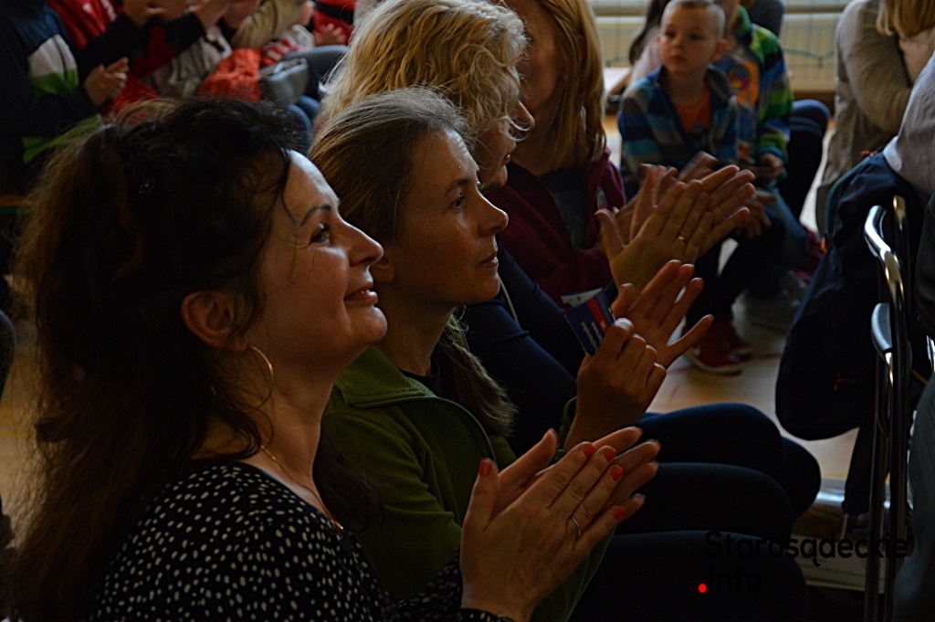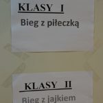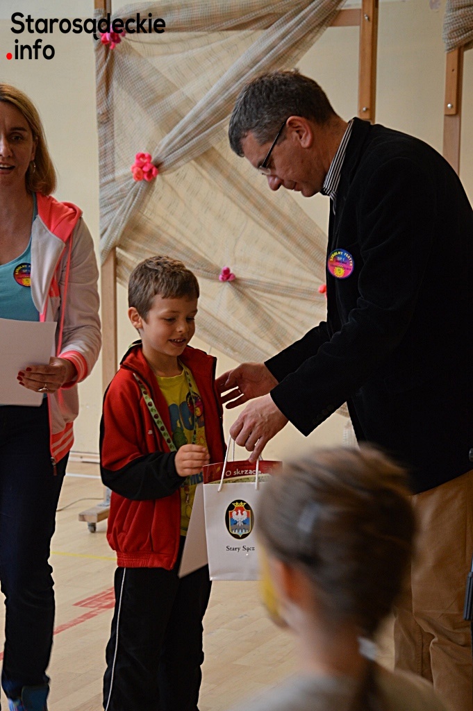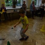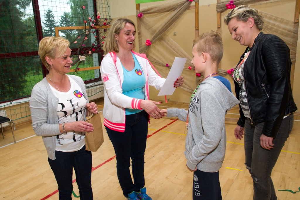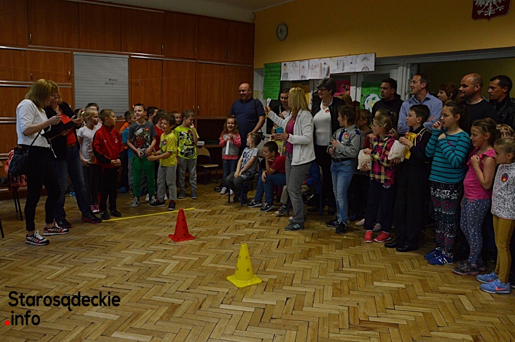 Tymczasem w sali obok trwały w najlepsze zawody sportowe. Miłośnicy aktywności ruchowej w każdym wieku mogli zmierzyć się z nietypowymi konkurencjami: bieg z jajkiem, bieg z piłką, skoki na skakance, obieranie jabłek, zajadanie pączków i wiele wiele innych. Rodzice razem z dziećmi, ramię w ramię i nauczyciele w roli sędziów.