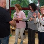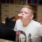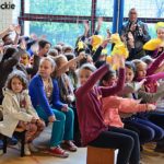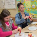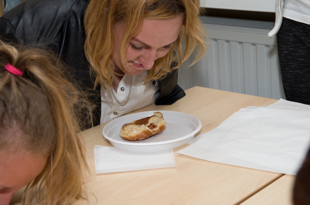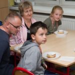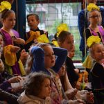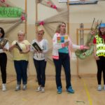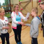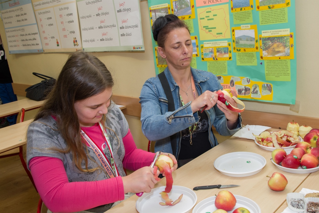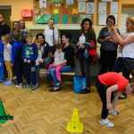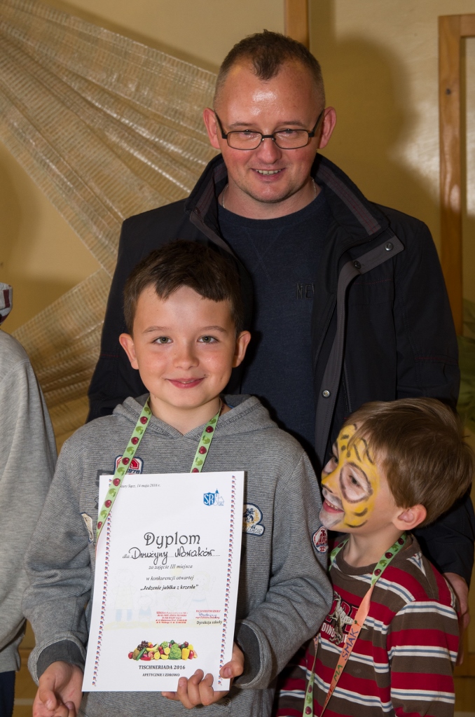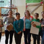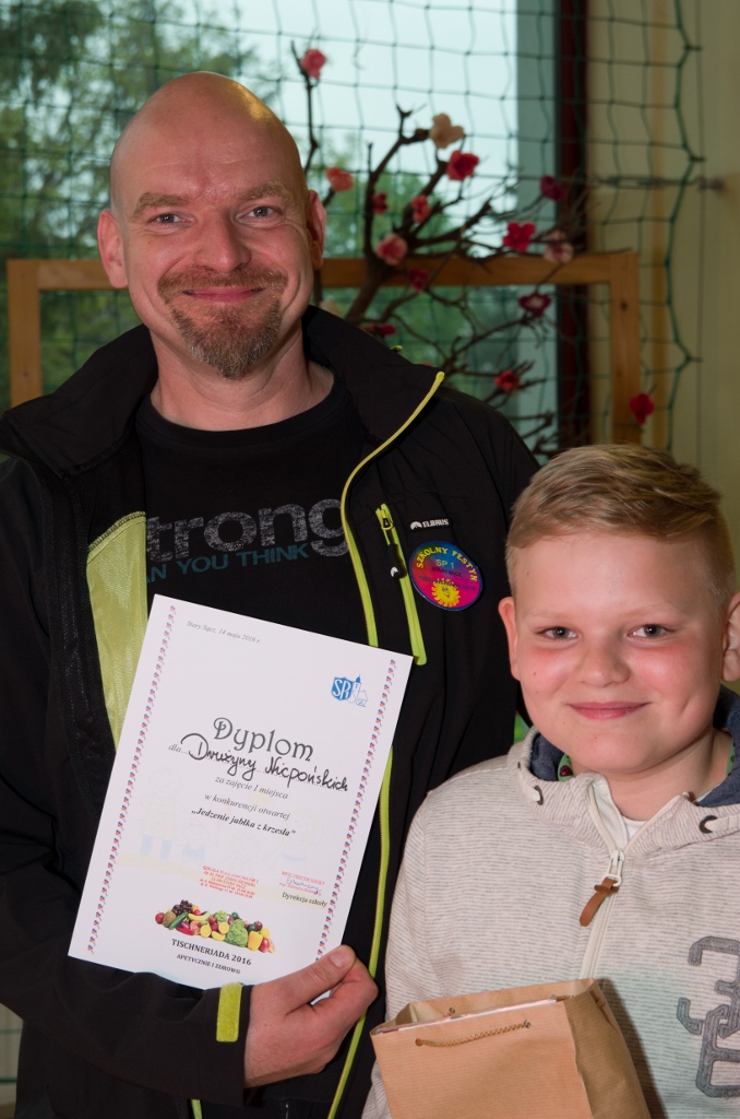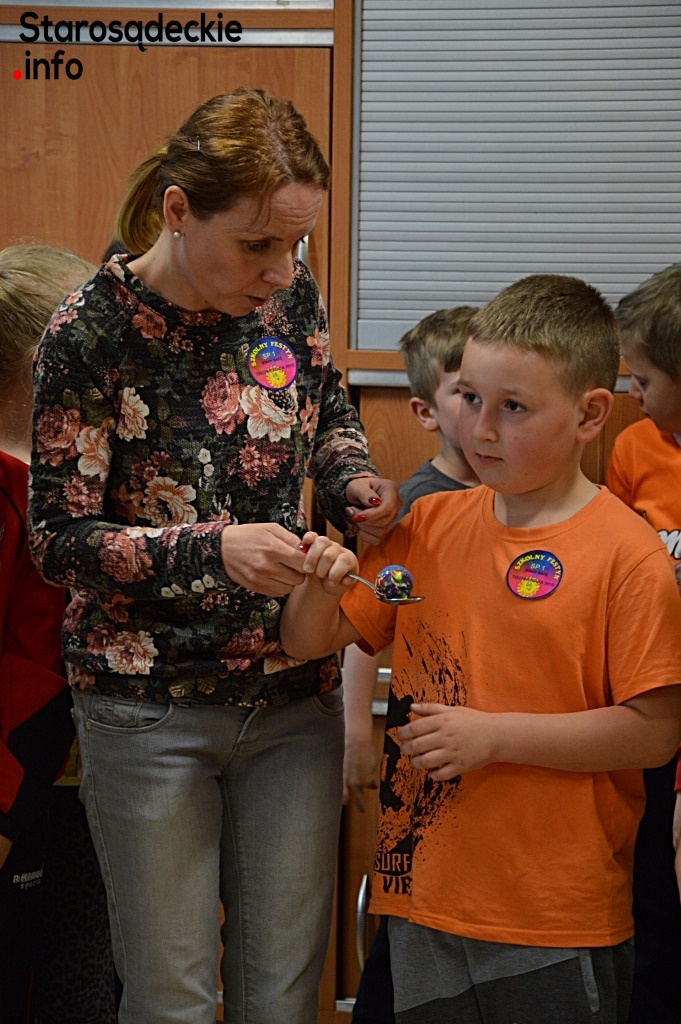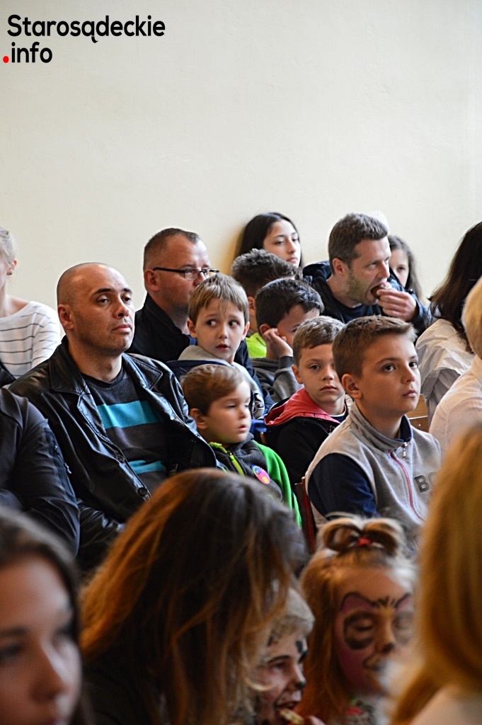 Tymczasem w sali obok trwały w najlepsze zawody sportowe. Miłośnicy aktywności ruchowej w każdym wieku mogli zmierzyć się z nietypowymi konkurencjami: bieg z jajkiem, bieg z piłką, skoki na skakance, obieranie jabłek, zajadanie pączków i wiele wiele innych. Rodzice razem z dziećmi, ramię w ramię i nauczyciele w roli sędziów.