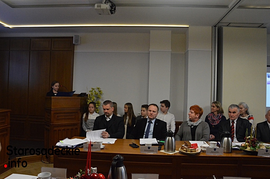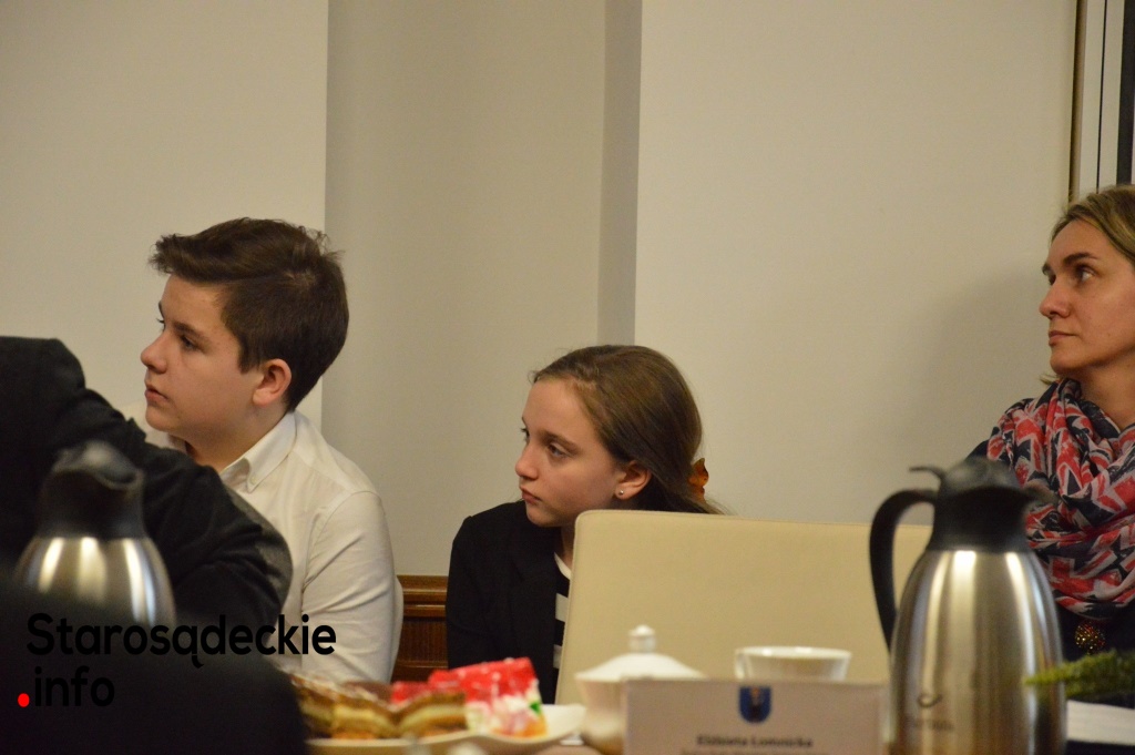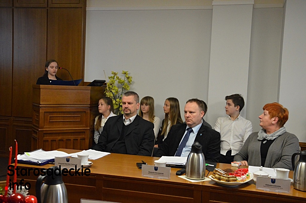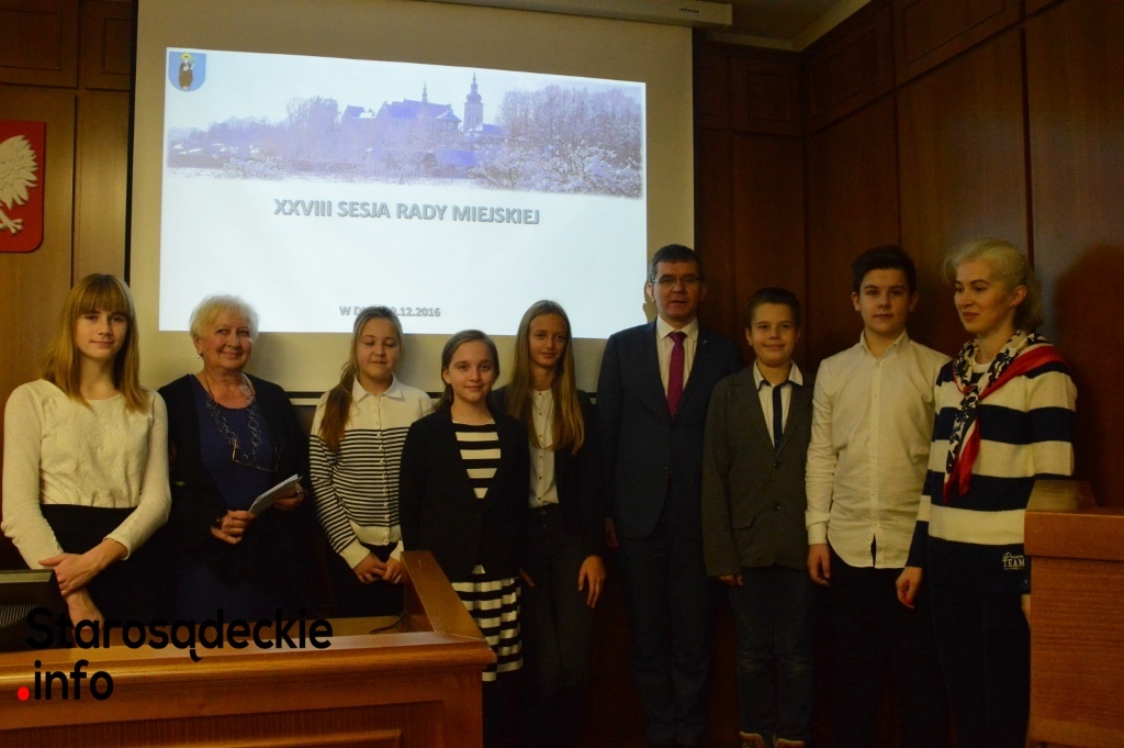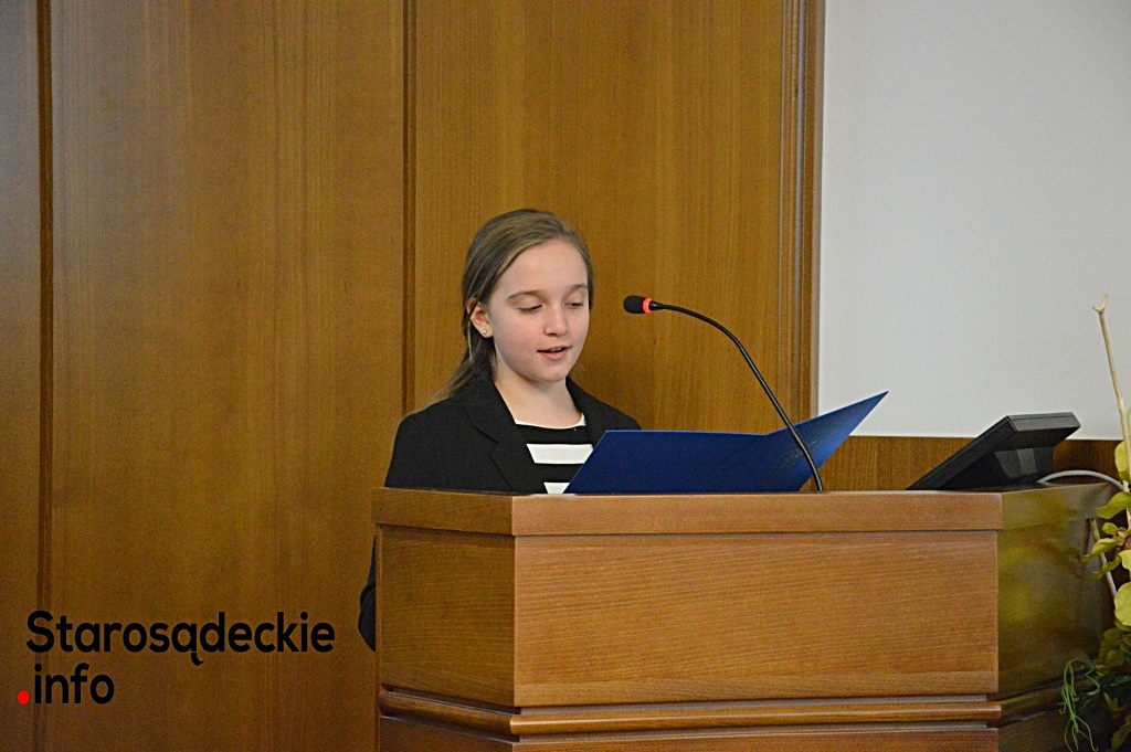 Kończąc przemówienie, szóstoklasistka podziękowała – w imieniu własnym, rówieśników, Dyrekcji szkoły i koordynatorów – Panu Burmistrzowi za możliwość współpracy starosądeckiej „1” z Urzędem Miejskim, Pani Ewie Zielińskiej – przewodniczącej Rady Miejskiej za zaproszenie do udziału w XXVIII posiedzeniu Rady Miejskiej oraz rodzicom rówieśników, pracownikom urzędu, którzy zaangażowali się w inicjatywy realizowane w szkole.