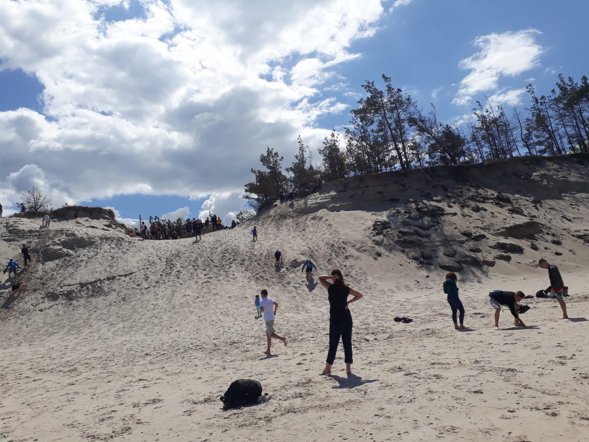 Drugiego  dnia (wtorek) po śniadaniu , młodzież  wybrała się szlakiem do latarni Morskiej w Czołpinie położonej na najwyżej zalesionej wydmie. Dotarła również do Czołpińskich  Ruchomych Wydm ,które nie pokryte roślinnością robią duże wrażenie i przepiękny  krajobraz  unikatowy w Europie jest  zwany polska Saharą. Rzeczywiście widoki zapierały dech w piersiach. Ten dzień niewątpliwie dostarczył naszym „podróżnikom” wielu doznań estetycznych. A wieczorem dyskoteka.