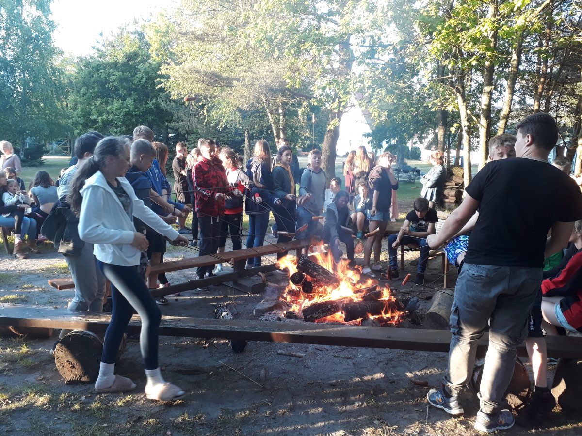 Kolejny dzień (czwartek )upłynął równie ciekawie , ale zdecydowanie za szybko. Zaraz po śniadaniu wszyscy wyruszyli do Muzeum Wsi Słowińskiej w  Klukach , a później z wieży widokowej nad Jeziorem Łebsko podziwiali zdumiewające krajobrazy wydm. Po powrocie do ośrodka organizatorzy zaprosili do marszobiegu po plaży i na pożegnanie na ognisko z tradycyjnym pieczeniem kiełbasek. Tej nocy chyba nikt nie pomyślał o szybkim zaśnięciu !    W końcu przyszedł ten dzień , o którym młodzi ludzie chcieli  zgodnie zapomnieć – piątek! Chyba wszystkim (oprócz opiekunów?) „łezka  kręciła się w oku”   na myśl o wyjeździe, powrocie do szkoły i codziennych obowiązków. Zanim jednak nastąpiło ostatnie „pożegnanie  z morzem”, jeszcze krótki  spacer po molo w Sopocie i wypad (koleją szynową) do pięknego Gdańska. To była niestety ostatnia atrakcja tegorocznej „zielonej szkoły” .