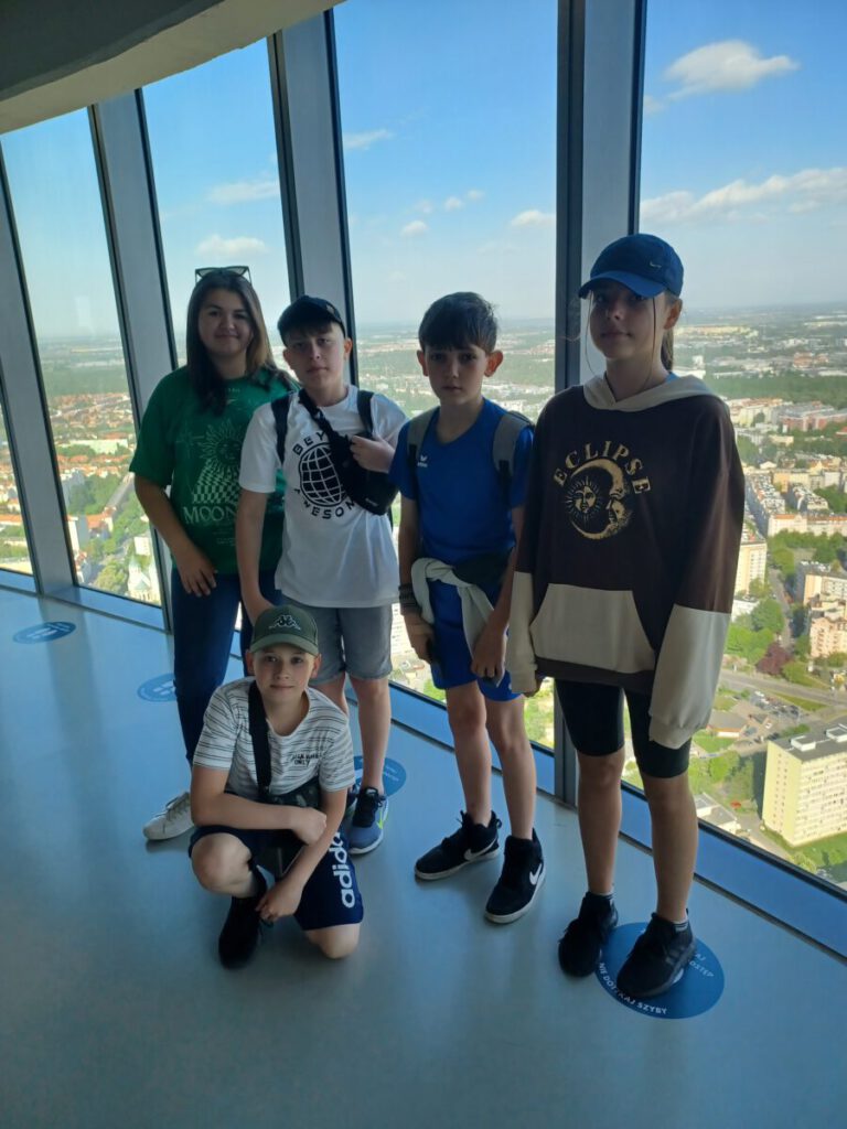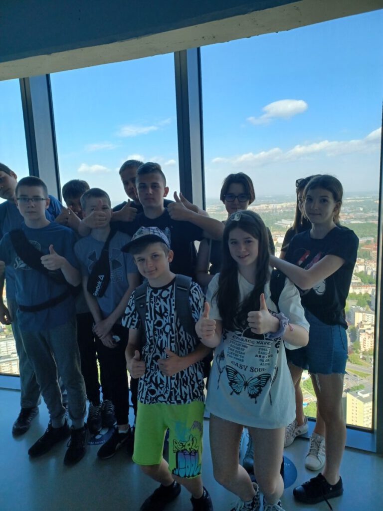 „Wyspani”, drugiego dnia, od rana zwiedzaliśmy Sky Tower, pierwszy drapacz chmur we Wrocławiu, który ma, aż 212 m wysokości. Punkt widokowy znajduje się na 49 piętrze. Krajobrazy widziane zza okien robią nieprawdopodobne wrażenie. To również świetne miejsce na zdjęcia (efekty można zobaczyć w mediach społecznościowych 🙂 )