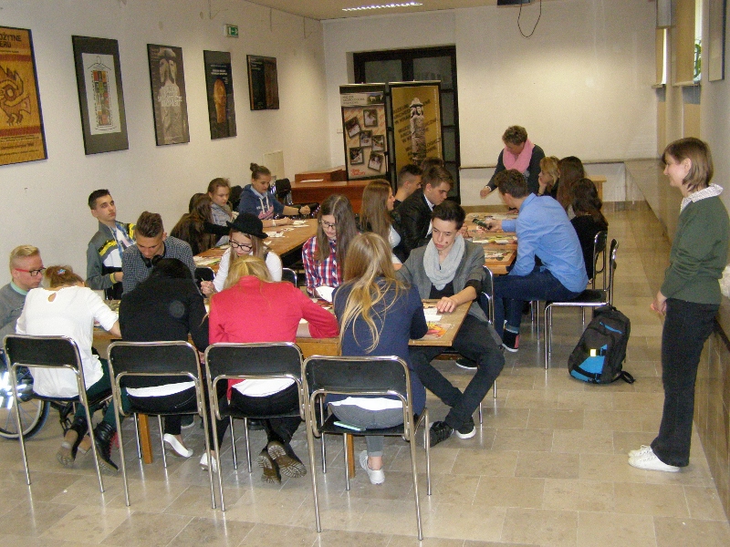 Kolejną naszą atrakcją, było zwiedzanie w Kamienicy Szołayskich , wystawy zatytułowanej „Szuflada Szymborskiej”. Ekspozycja jest rodzajem scenografii oraz trójwymiarowego kolażu. Mogliśmy zajrzeć do szuflad Noblistki i dotknąć przedmiotów, należących do zmarłej poetki. Zaskoczeniem była możliwość wysłuchania głosu Wisławy Szymborskiej po podniesieniu słuchawki telefonu. Tym samym przeszłość zbiegła się z teraźniejszością.