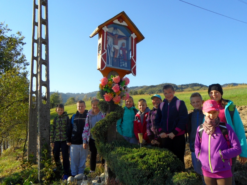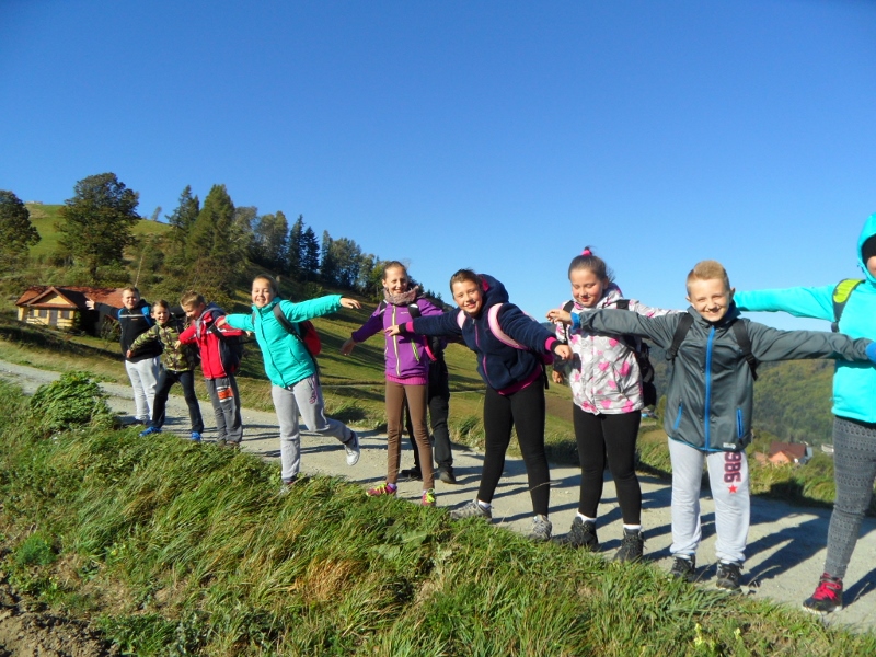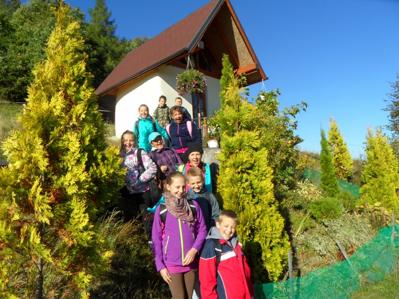 W czasie marszu była okazja na zajęcia z terenoznawstwa, uczniowie z oddali lokalizowali obiekty w terenie (i wcale nieźle im to szło!). Udało się nam również wypatrzyć w liściach i obejrzeć padalca – to beznoga jaszczurka. Po dotarciu na szczyt Kordowca, odpoczęliśmy po trudach marszu przy schronisku i przekąsiliśmy małe „co nie co”. Powrotna trasa biegła niebieskim szlakiem do Młodowa, skąd busem wróciliśmy do Starego Sącza.