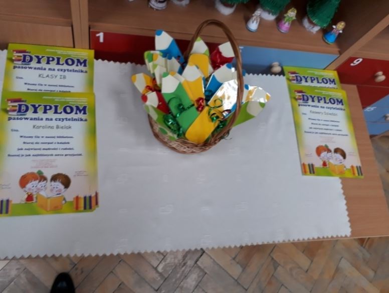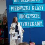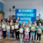 Po części artystycznej nadszedł czas na złożenie ślubowania i moment pasowania na czytelnika. Z rąk pani dyrektor szkoły Wioletty Nowak uczniowie otrzymali pamiątkowe dyplomy ufundowane przez Radę Rodziców i zakładki do książki wykonane przez ich starsze koleżanki. Zaproszenie czytelników do biblioteki oraz wspólne zdjęcia zakończyły uroczystość. Już jutro mali czytelnicy odwiedzą bibliotekę, by po raz pierwszy „wypróbować” swój identyfikator z kartą czytelnika i wypożyczyć pierwszą książkę z biblioteki Szkoły Podstawowej nr 2.