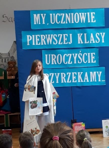Uroczystość pasowania odbyła się 29 listopada 2018 roku. W pięknie przygotowanej sali nr 21 zebrała się 36-osobowa grupa uczniów z klas 1A i 1B wraz z wychowawczyniami: panią Anną Kozik i Iwoną Stojek. Swoją obecnością zaszczyciły panie: dyrektor szkoły Wioletta Nowak oraz Małgorzata Maśko wychowawczyni uczennic, które wystąpiły przed piewszoklasistami.