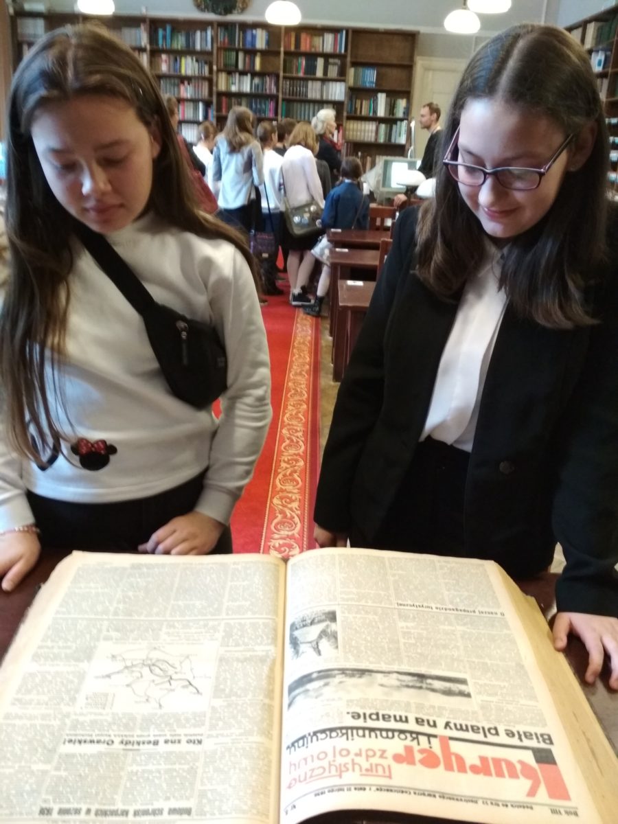 Entuzjastom kultury polskiej: Zuzannie Batko z klasy 6d, Wiktorii Bołoz z kl. 6a, Emilii Dei z kl. 6a, Julii Jasińskiej z kl. 6d, Martynie Hopek z kl. 6c, Kacprowi Rogalskiemu z kl. 7b w siedzibie Polskiej Akademii Nauk i Polskiej Akademii Umiejętności udostępniono zbiory Archiwum Narodowego, w depozycie którego znajdują się m.in. dokumenty prof. Karoliny Lanckorońskiej, porucznika Armii Krajowej, więźniarki obozu koncentracyjnego w Ravensbrück, doctor honoris causa Uniwersytetu Jagiellońskiego, dwukrotnie wizytującej Nowy Sącz podczas II wojny światowej. Wizytę w PAN dedykowano również pamięci prof. Władysława Szafera – wybitnego polskiego przyrodnika, rektora Tajnego Uniwersytetu Jagiellońskiego w czasie okupacji hitlerowskiej. Starosądeczanie mieli także możliwość zaznajomienia się z przedwojennymi numerami „Ilustrowanego Kuriera Codziennego” wydawanego w Krakowie w latach 1910 – 1939. Obejrzeli jednocześnie ostatnie wydanie czasopisma z 26 października 1939 roku oraz wiele unikatowych ksiąg.