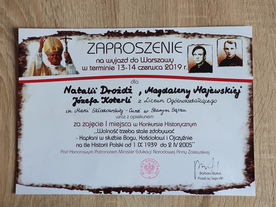 Uczniowie starosądeckiego „ogólniaka” najlepsi w konkursie historycznym!