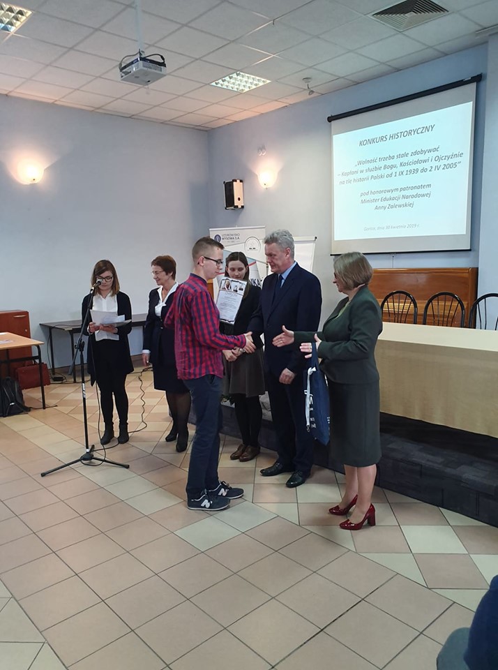W dniu 30 kwietnia 2019 roku odbył się w Zespole Szkół Zawodowych w Gorlicach finał konkursu historycznego „ Wolność trzeba stale zdobywać – Kapłani w służbie Bogu, Kościołowi i Ojczyźnie na tle historii Polski od 1 IX 1939 do 2 IV 2005”, dla uczniów szkół ponadgimnazjalnych województwa małopolskiego. Patronat Honorowy nad konkursem objęła Minister Edukacji Narodowej Anna Zalewska a organizatorami byli Poseł na Sejm RP Barbara Bartuś, Kuratorium Oświaty w Krakowie; Oddział Instytutu Pamięci Narodowej w Krakowie; Zespół Szkół Zawodowych im. Kazimierza Pułaskiego w Gorlicach; Przewodniczący Klubu Radnych PiS Powiatu Gorlickiego Tomasz Płatek. Była to kolejna edycja konkursu, które przez wiele lat odbywały się w Bieczu, a w tym roku po raz drugi miał miejsce w Gorlicach.