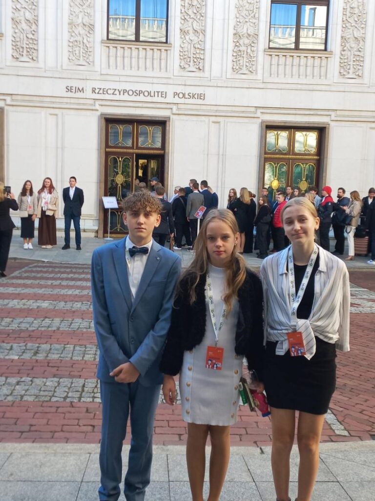 30 września 2024 roku uczniowie: Kinga Kowalkowska, Dominika Ciągło i Damian Biel wraz z innymi młodymi parlamentarzystami z całej Polski, mieli niepowtarzalną okazję uczestniczyć w obradach Sejmu Dzieci i Młodzieży w Warszawie. To wydarzenie było zwieńczeniem intensywnych przygotowań, które rozpoczęły się od serii spotkań online.