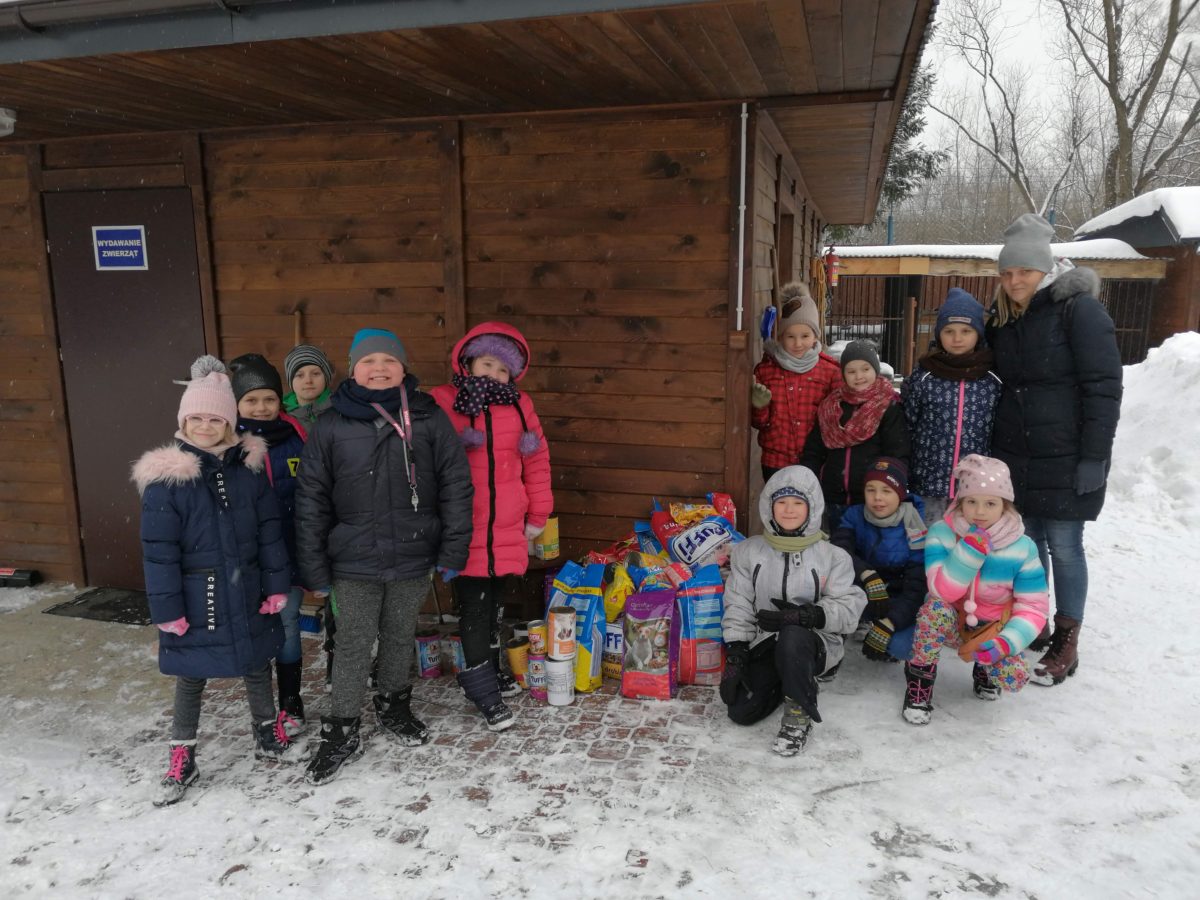 Podziękowania dla Pani Dyrektor Grażyny Smagi, która zgodziła się na przeprowadzenie akcji w szkole; wszystkim rodzicom, uczniom, nauczycielom, którzy wspomogli ten szczytny cel. Szczególnie dziękujemy Pani Anecie za koordynowanie akcji i wspieranie jej uczestników oraz rodzicom uczniów klasy drugiej, którzy zapewnili dojazd i towarzyszyli dzieciom podczas wizyty w schronisku.