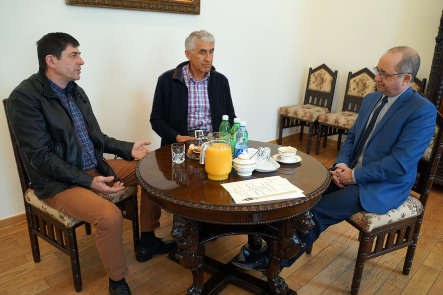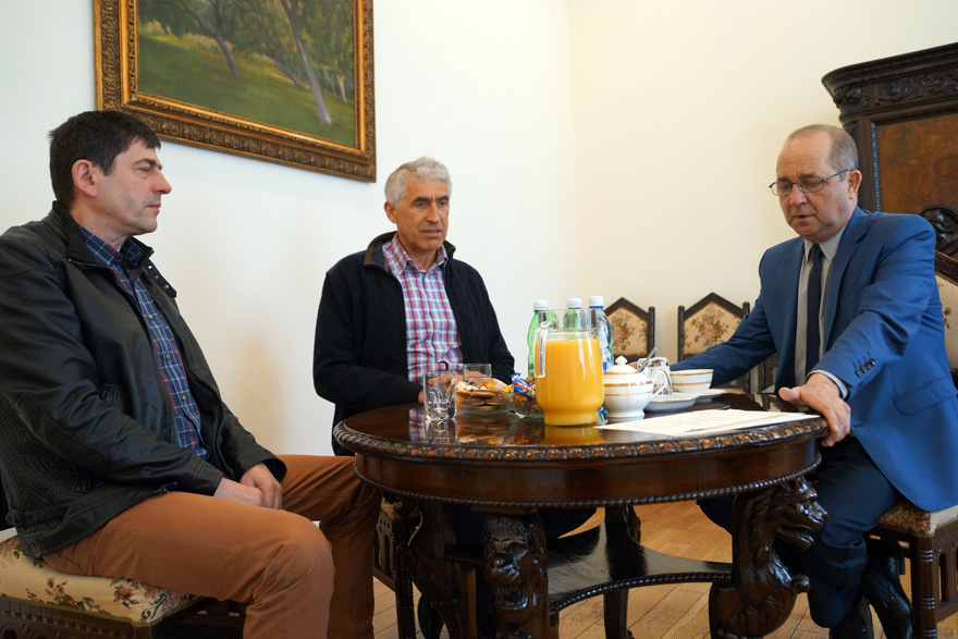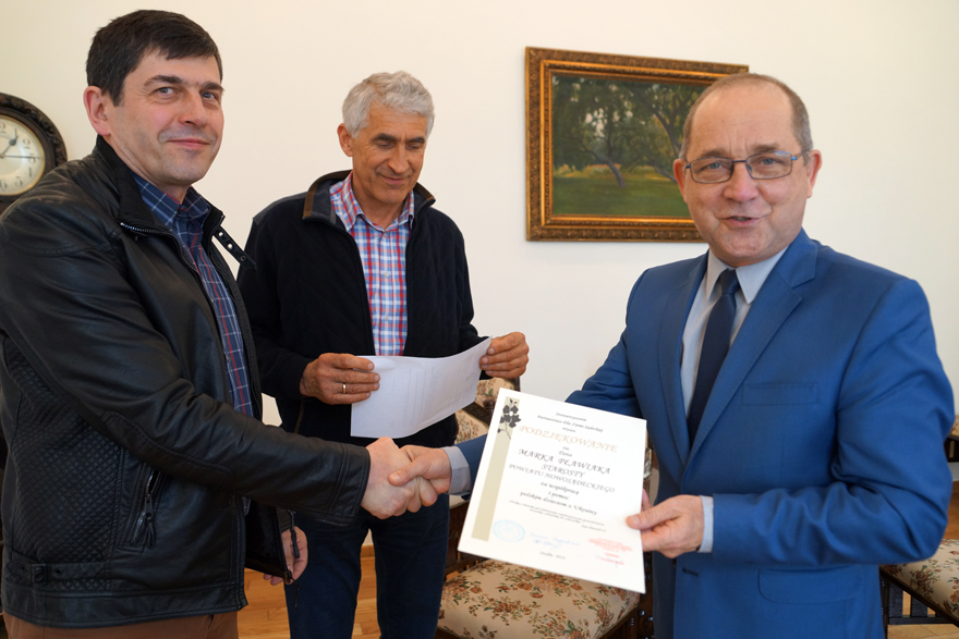 Stanisław Dyrek i Marek Uszko wręczyli staroście Markowi Pławiakowi podziękowania w imieniu swojego Stowarzyszenia, a także Kulturalno-Oświatowego Związku Polaków w Wołodarsku Wołyńskim. List podpisała prezes Żanna Szyszkina.