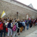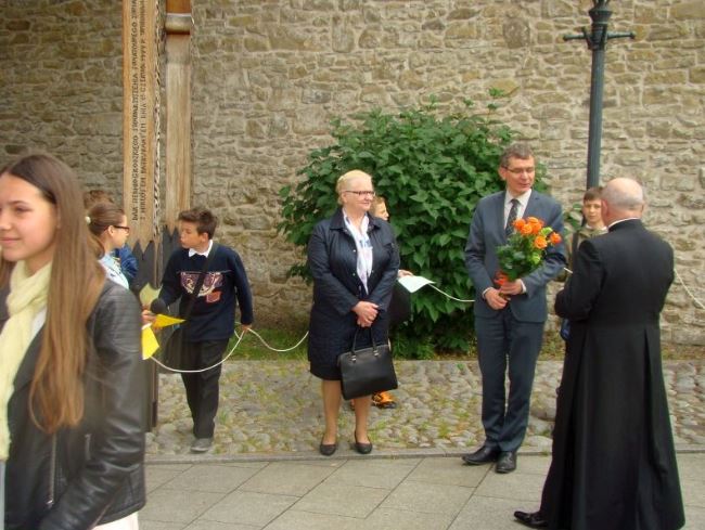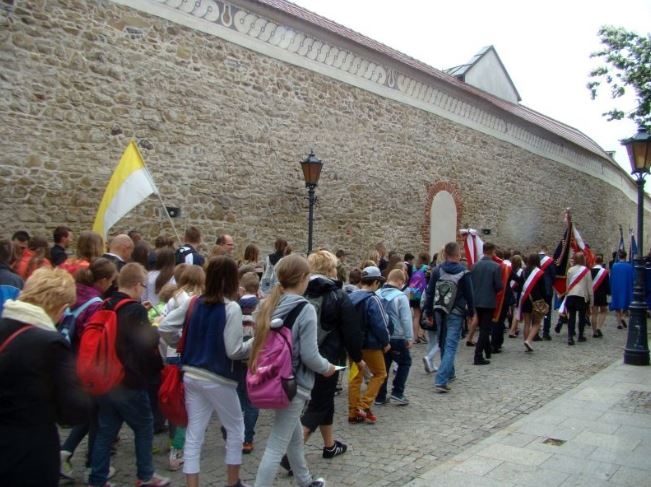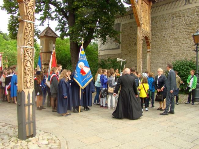 Uroczystość szkół papieski, którą organizują szkoły Zespołu Szkół w Gołkowicach rozpoczęła się spotkaniem z Burmistrzem Starego Sącza przed Bramą Seklerską, a później tradycyjnie pomaszerowano do Diecezjalnego Centrum Pielgrzymowania na mszę świętą.