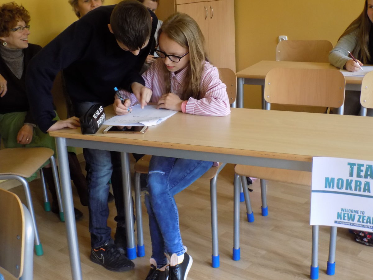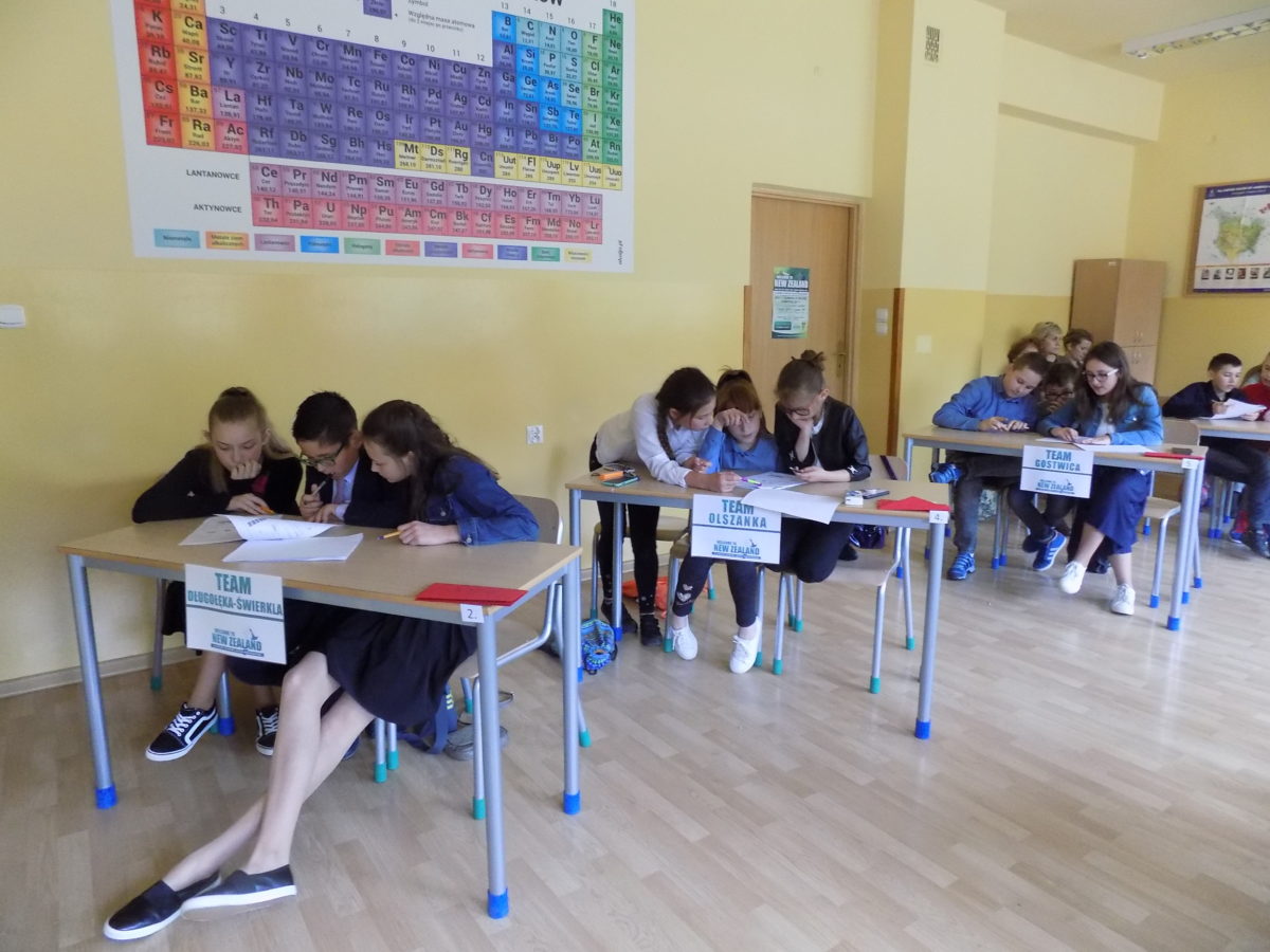 Po części oficjalnej rozpoczął się konkurs, który trwał około 2 godzin. Składał się on z następujących zadań: praca z filmem, rozumienie tekstu słuchanegoi pisanego, zagadki językowe oraz gramatyczne, rozwiązywanie quizów, gier językowych oraz zadania sprawdzające wiedzę o geografii, kulturze i życiu codziennym w Nowej Zelandii. W czasie zmagań uczniowie wykorzystywali nowoczesne technologie takie jak aplikacja Kahoot oraz czytnik kodów QR.