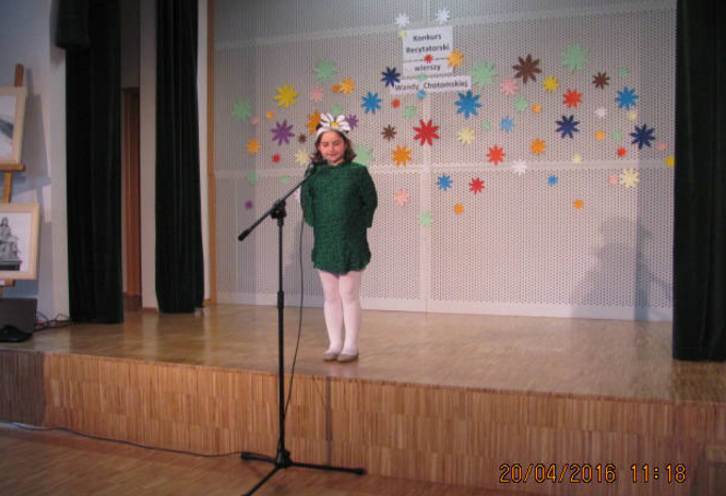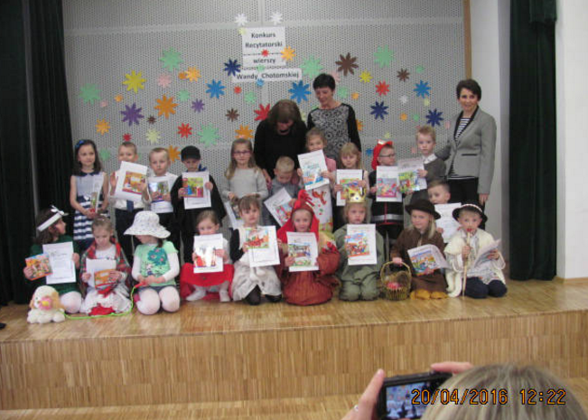 W dniu 18 kwietnia 2016 roku w Oddziale Przedszkolnym w Gaboniu odbył się szkolny konkurs recytatorski wierszy Wandy Chotomskiej. W konkursie wzięło udział 15 osób. Po wysłuchaniu wierszy wszystkich uczestników, komisja w składzie: dyrektor Elżbieta Kruczek, Janina Pelc i Lucyna Krzak wyłoniła zwycięzców.
