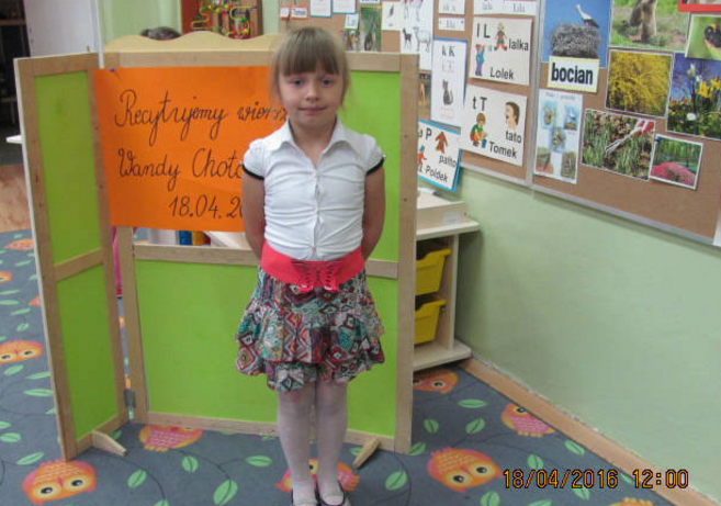 IV miejsce zajęła Paulina Dobosz recytując wiersz pt.” Placek”.